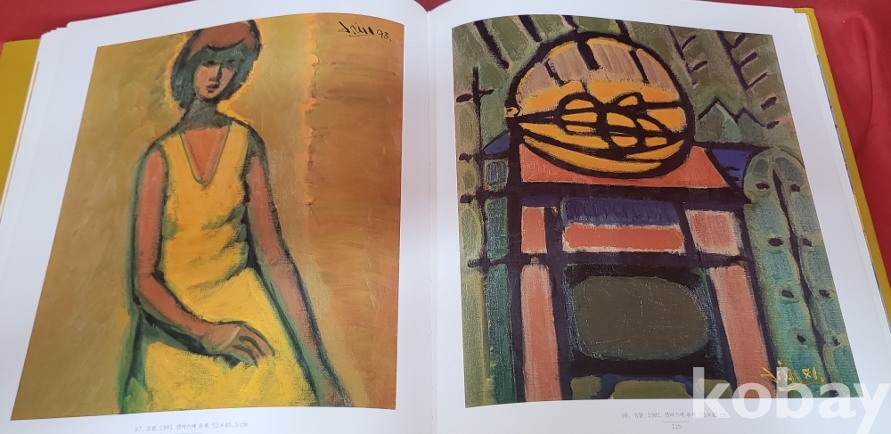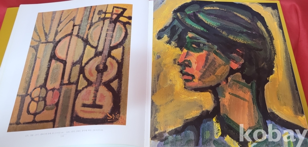 서양화가 윤중식 직접 그린 인물화와 사인이 보이는 화보 도록입니다,