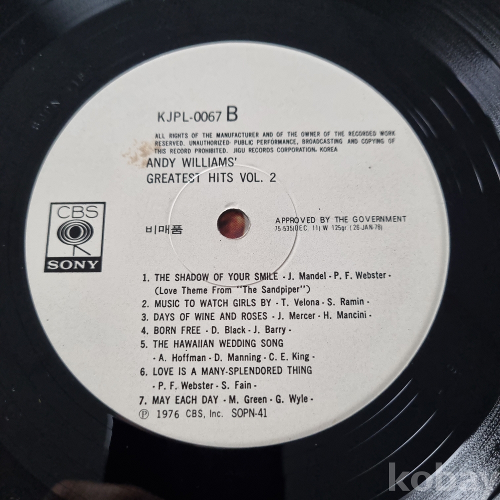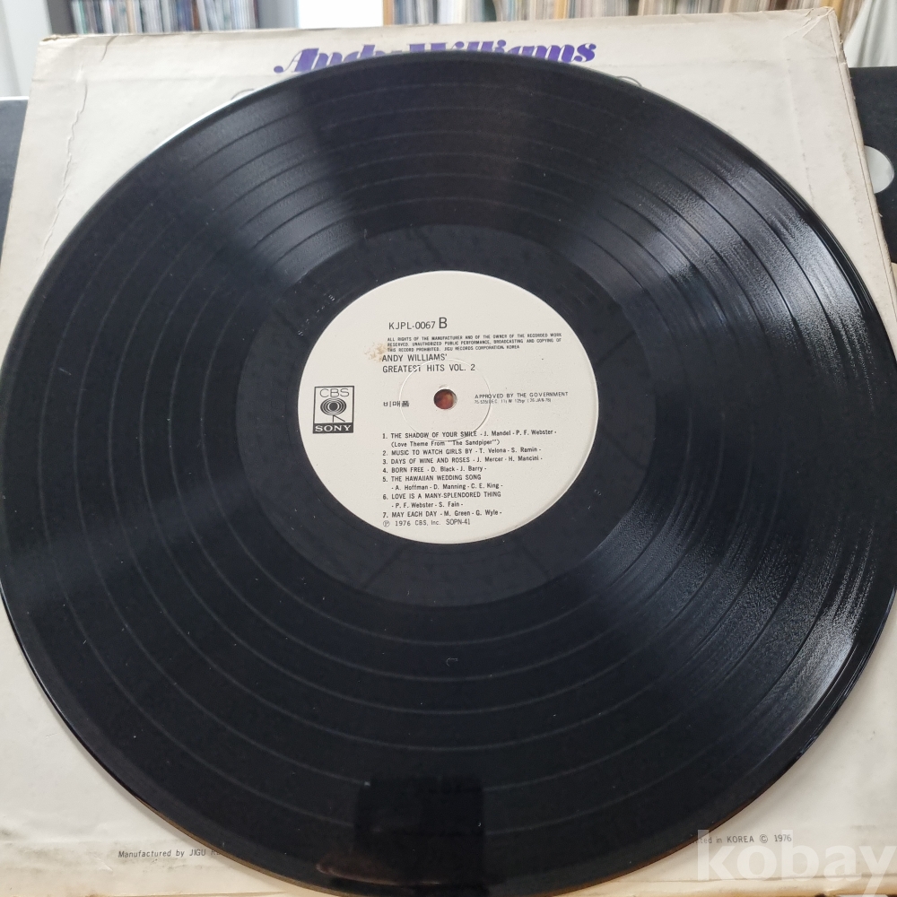ANDY WILLIAMS GREATEST HITS 2 [MOON RIVER] 1976년 초반 (비매품)
