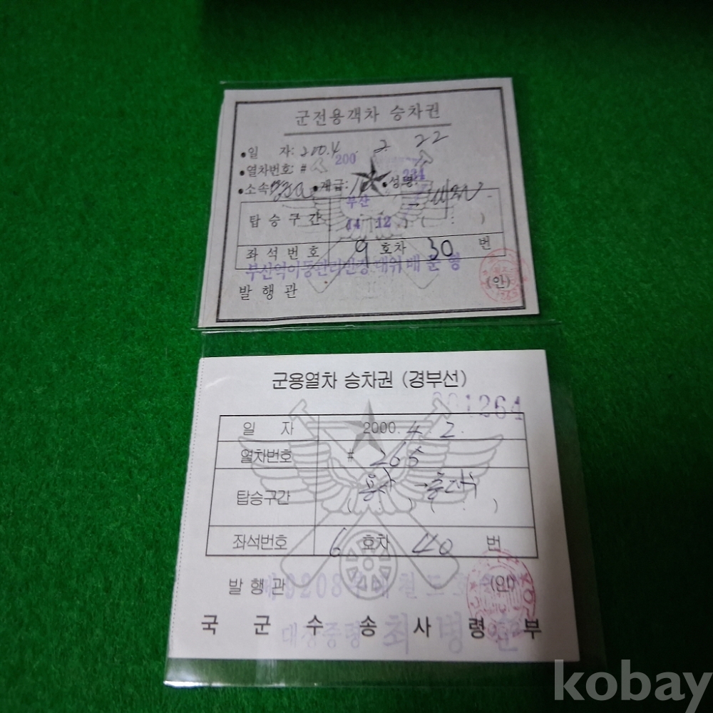 한국철도 군객차 승차권