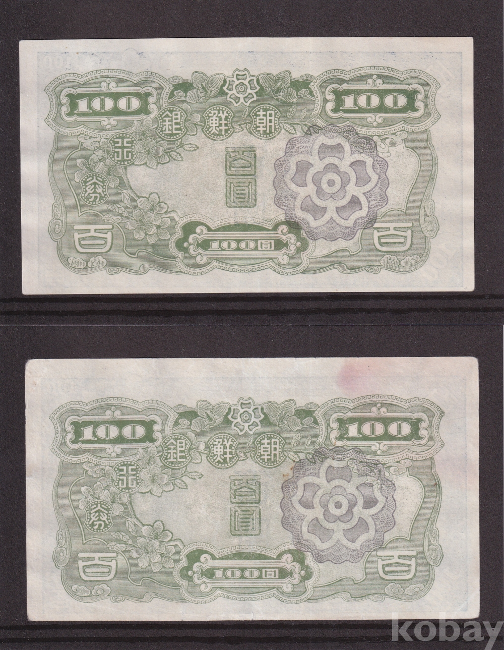 - 조선은행 무 백원권은 판번호별로 2종류 원지로 발행을 하였습니다.