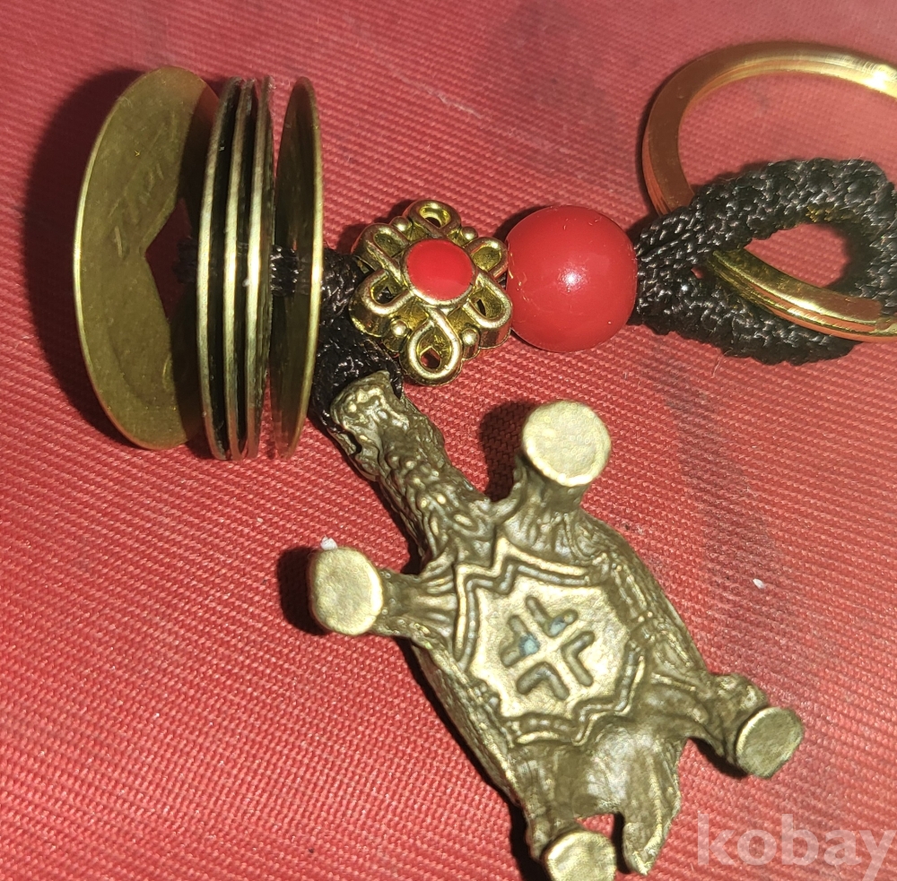 KㅡS 100차 내 1앞번 ///// 순치 통보(順治)와 가경통보(嘉慶) 엽전5개와 청동 거북이가 달린 열쇠고리입니다,