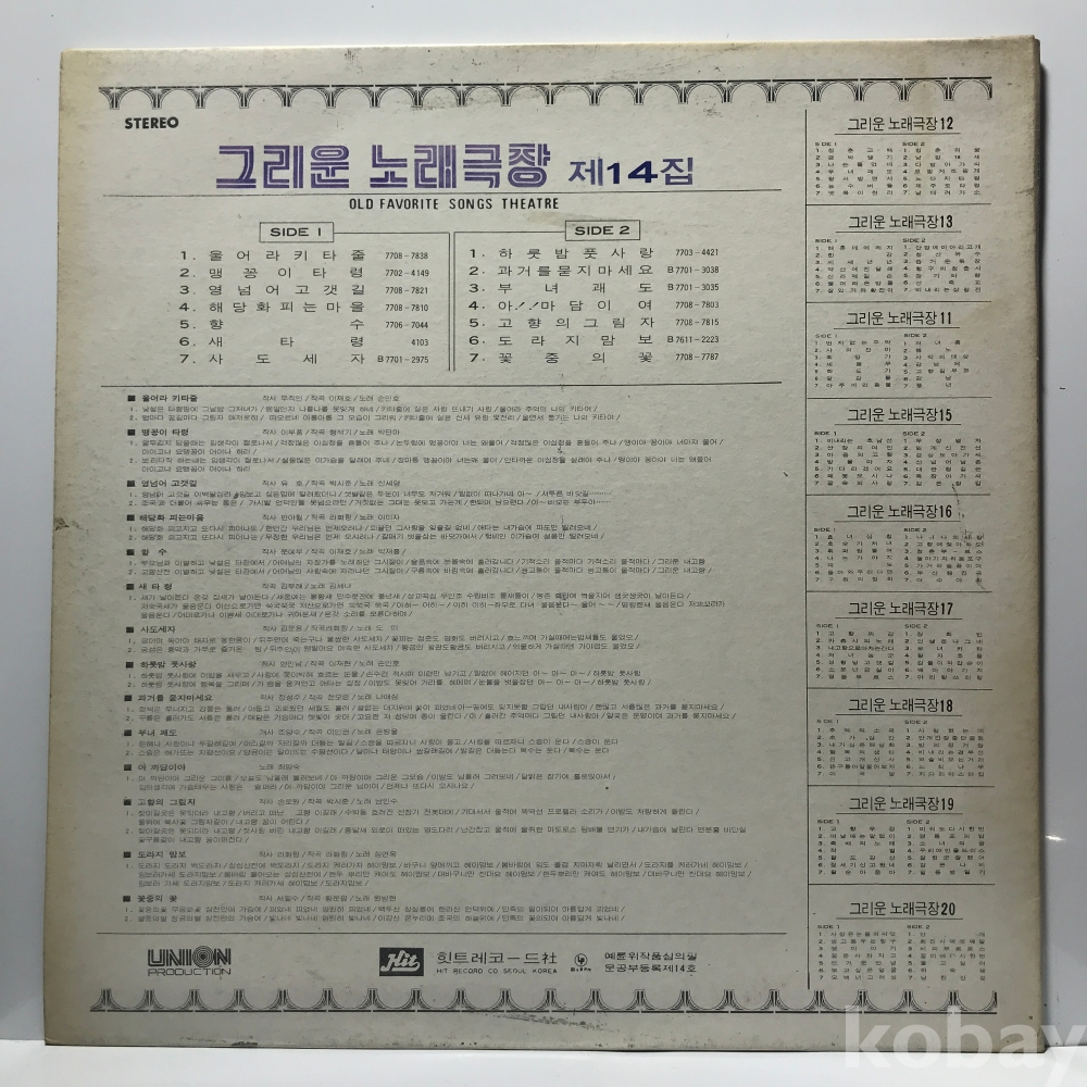 LP 29,300-86 그리운 노래극장 14집 - 손인호 신세영 박단아 남인수 외 . 77 히트 자켓 EX+ 알판 EX+