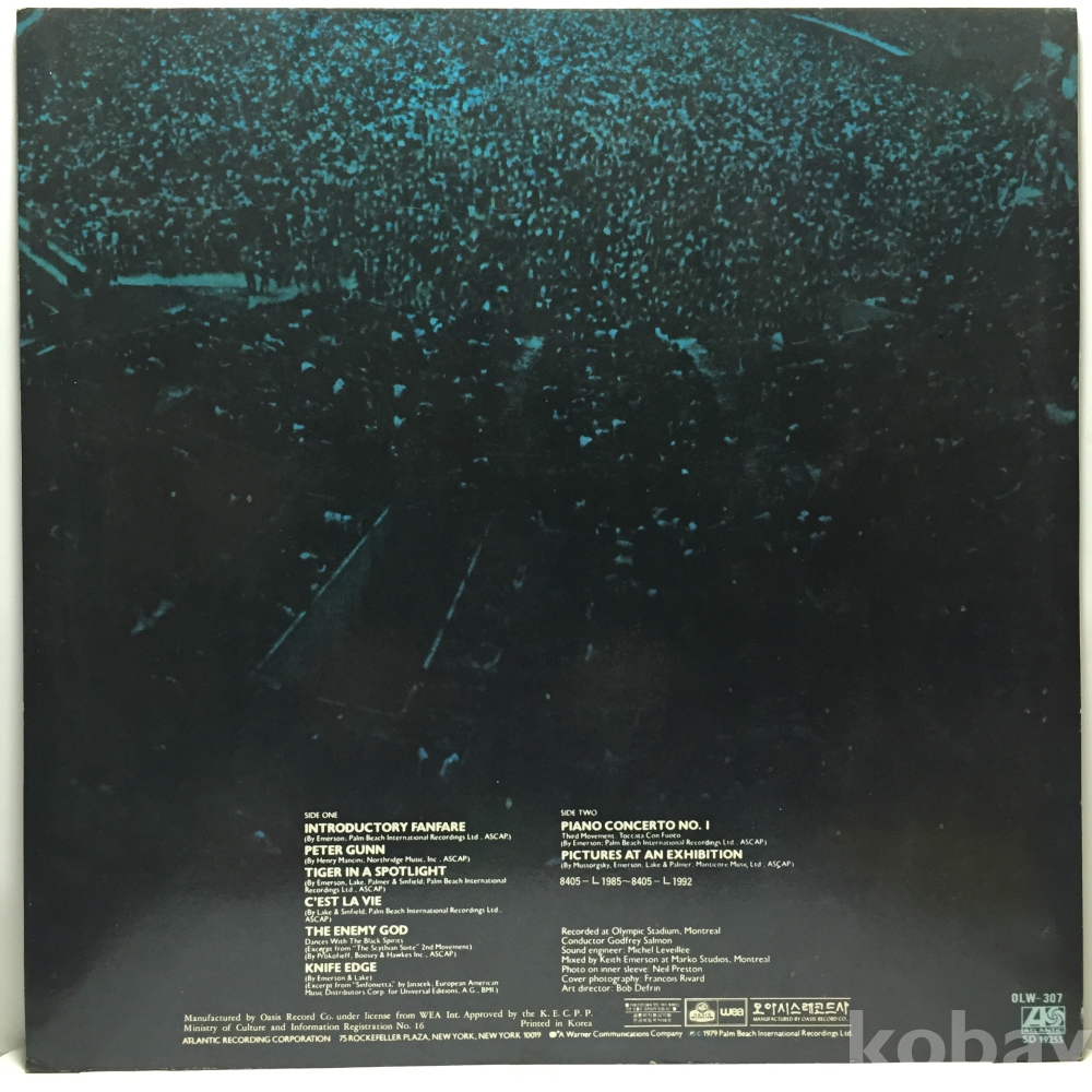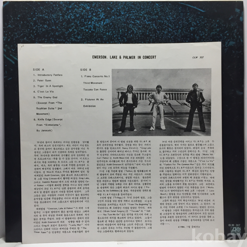 LP 81,400-61 Emerson Lake & Palmer In Concert 자켓 EX+ 알판 EX 84 년 국내반