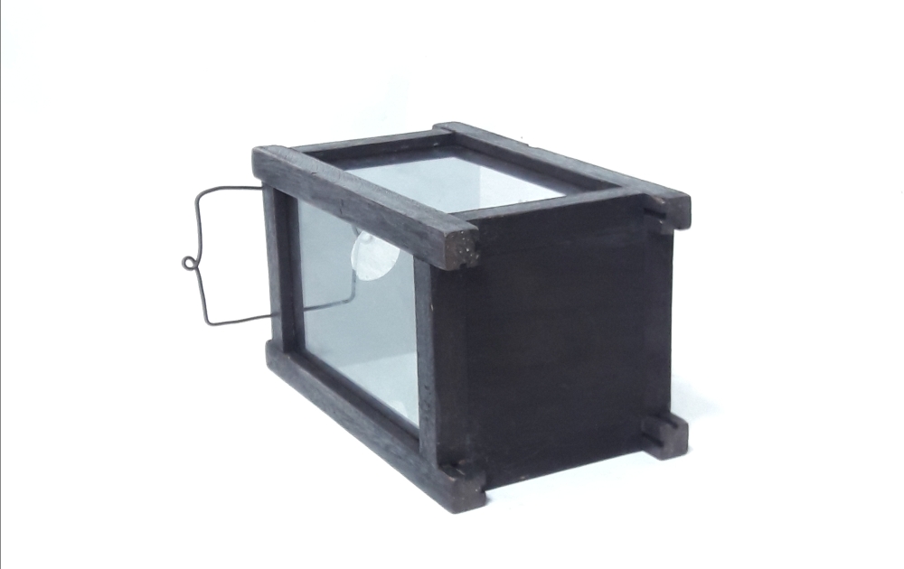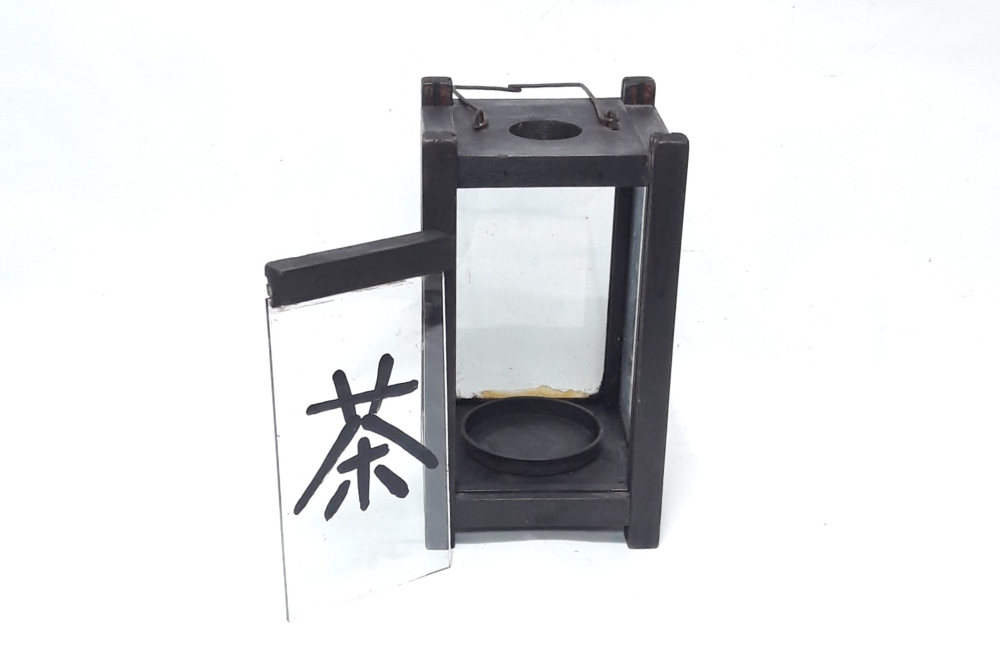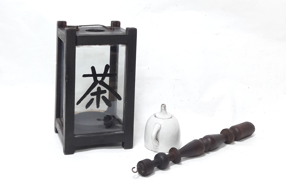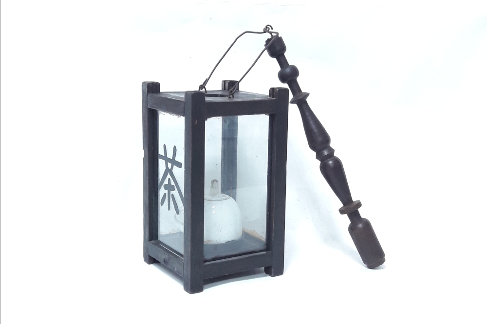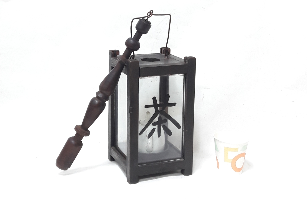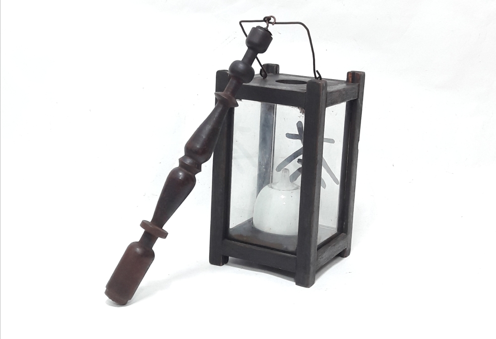 규격: 나무 등 가로 13.8cm 세로 13.5cm 높이 24.2cm , 백자호롱 직경 7.3cm, 높이 8.5cm, 등걸이 35cm 직경 약 3.2cm