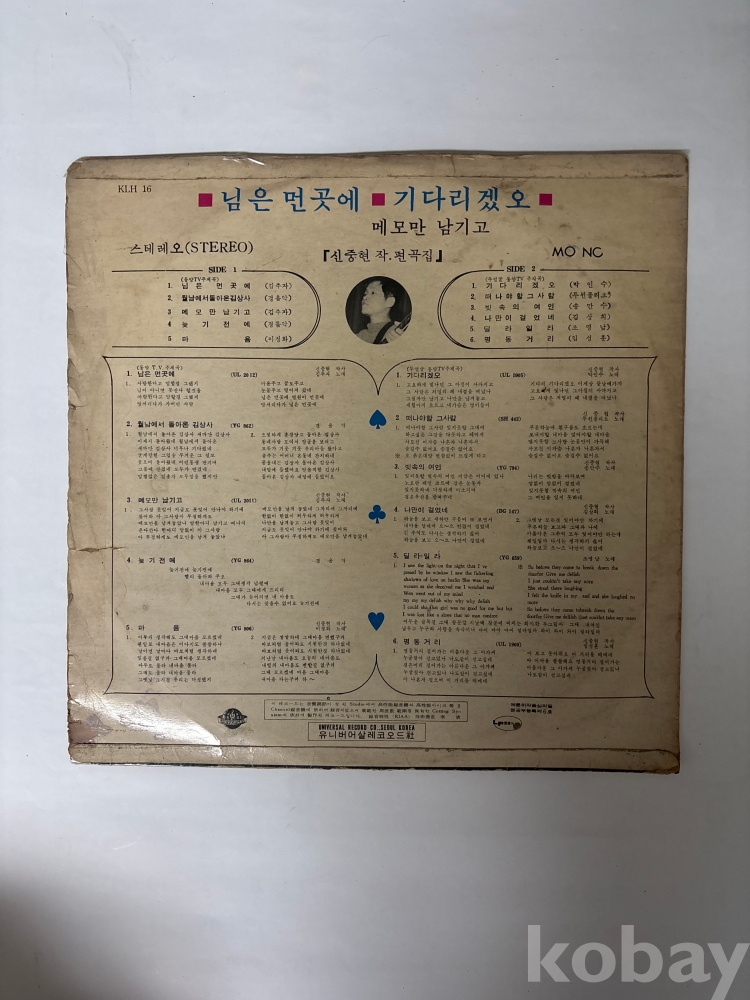 | 자켓상태 | VG : 주름, 접힘, 모서리 찢김 다수 | 음반상태 | VG : 생활 기스 다수, 가벼운 노이즈 존재 | 발매정보 | 초반 | 가사지여부 | 무 |