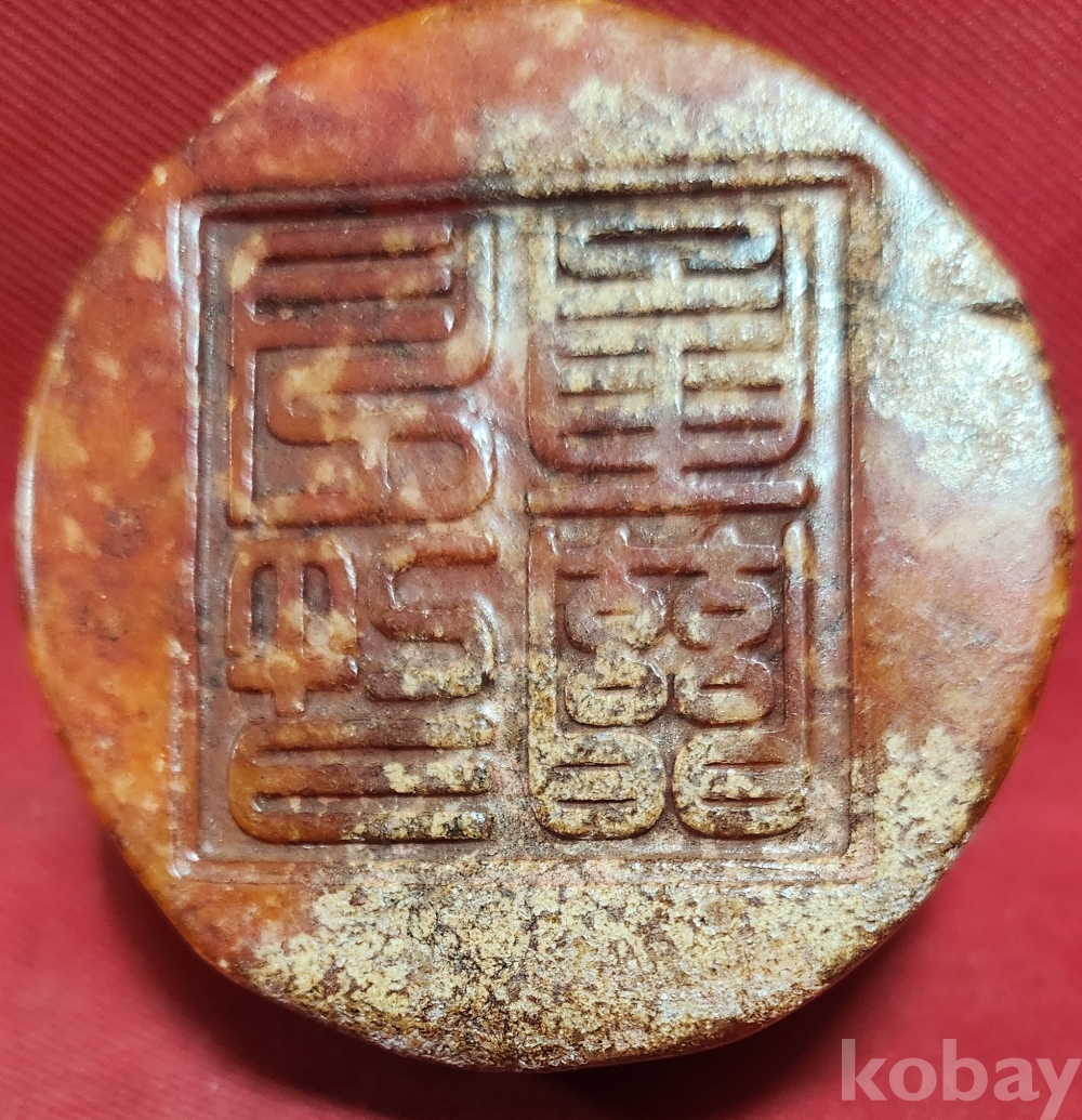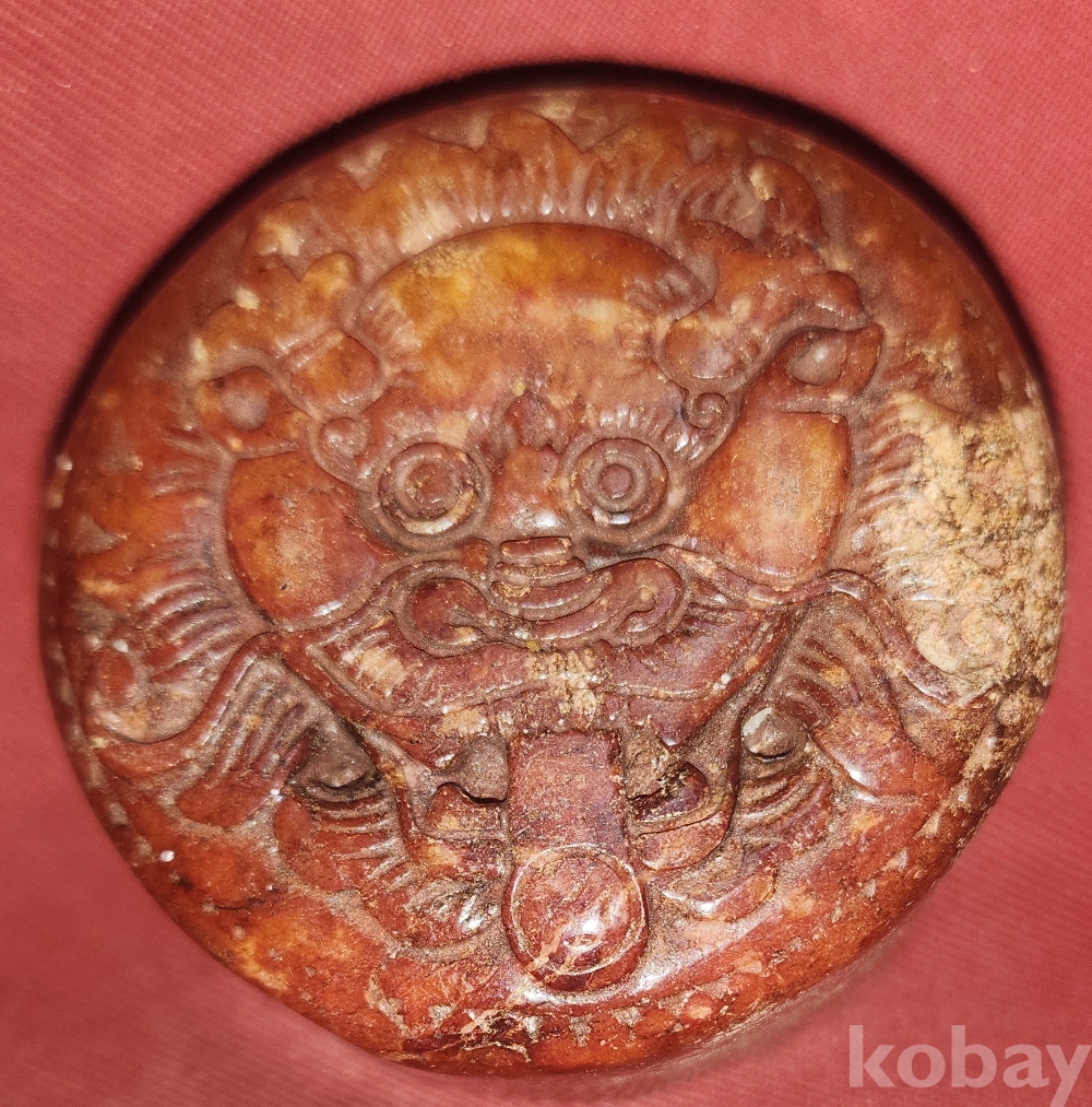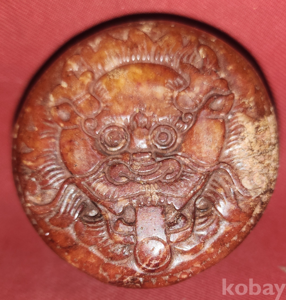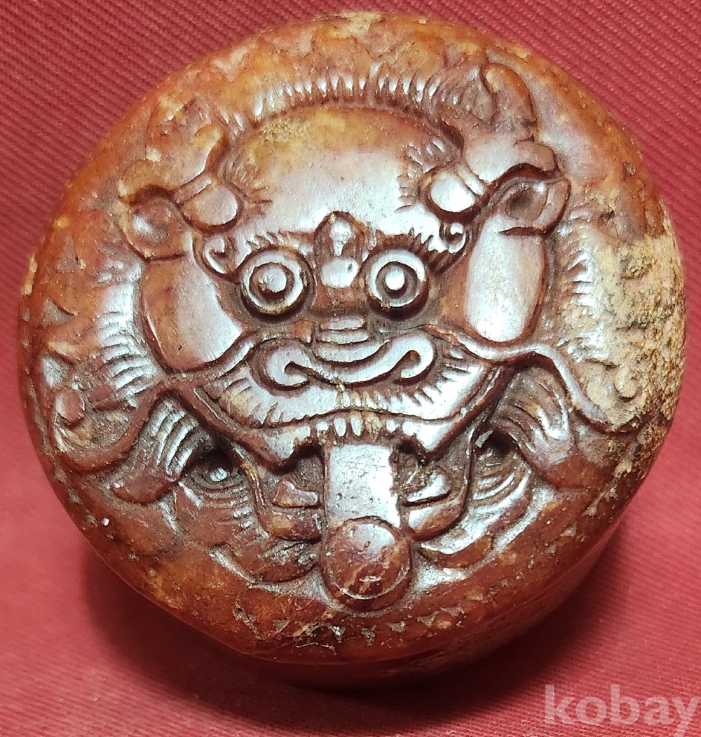 홍옥(紅玉)으로 완성된 귀면(鬼面) 문양 낙관 입니다,