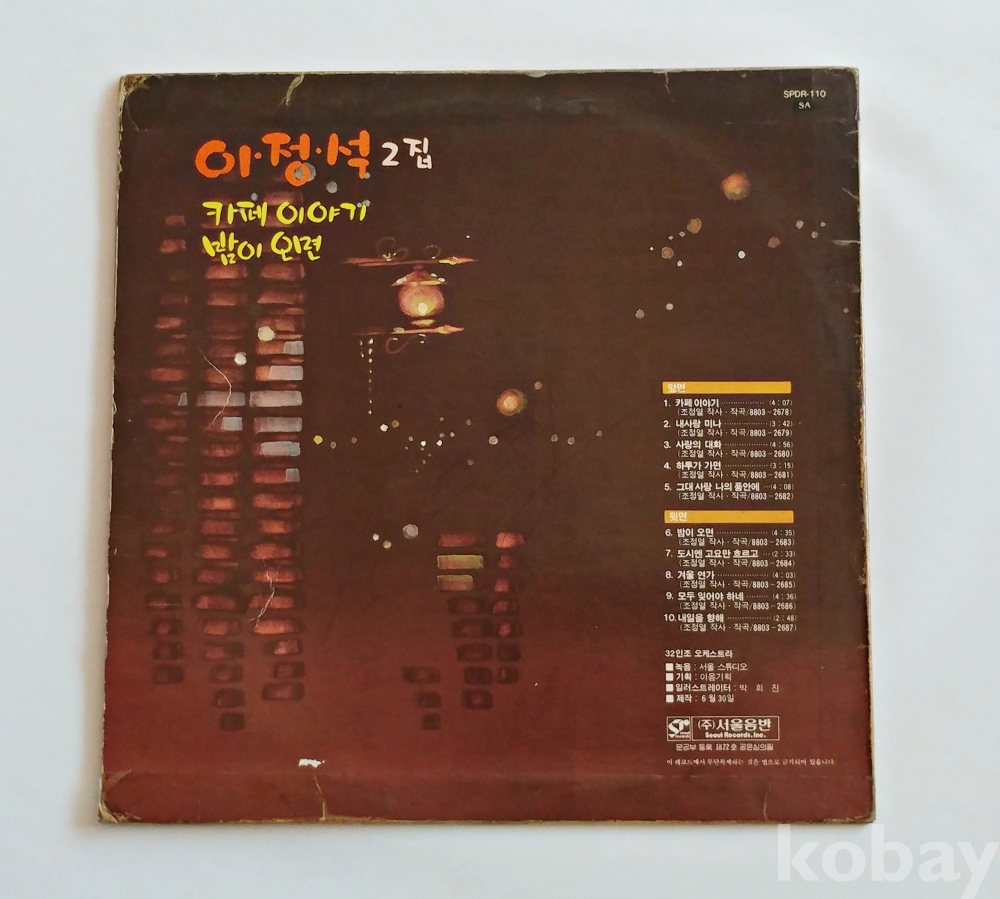| 자켓상태 | EX : 약간의 마모, 모서리 찢김 존재 | 음반상태 | EX : 재생에 영향 없는 가벼운 기스 존재 | 발매정보 | 알수없음 | 가사지여부 | 무 |