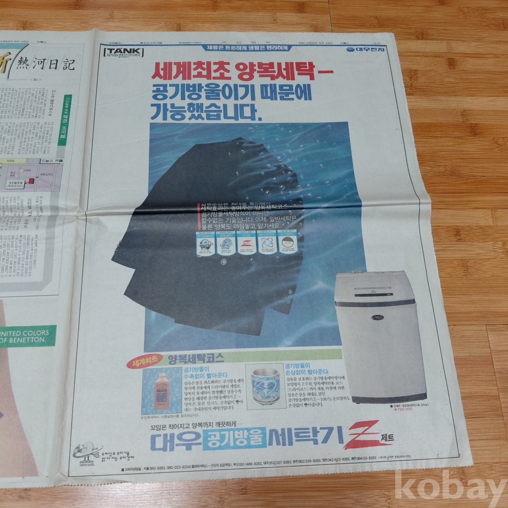 대우 공기방울 세탁기 제트 광고 조선일보 조선일보 93년9월16일 올려드립니다