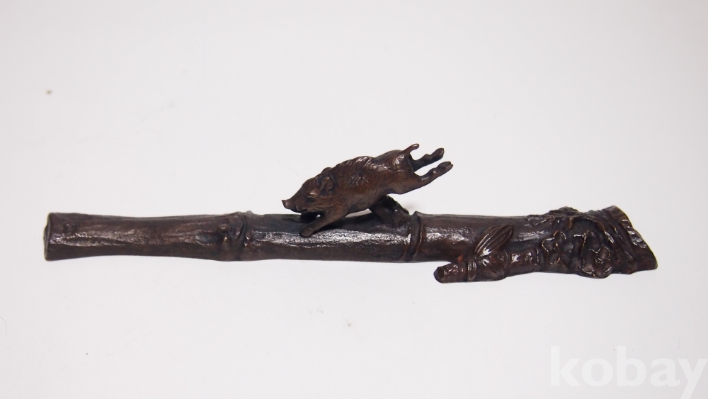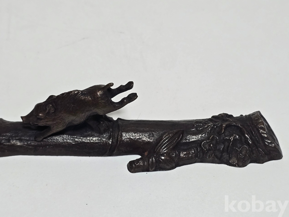 상품명 | 현대 금속 공예 / 죽절, 매화, 멧돼지 문양 '황동 문진' 작품 | ||