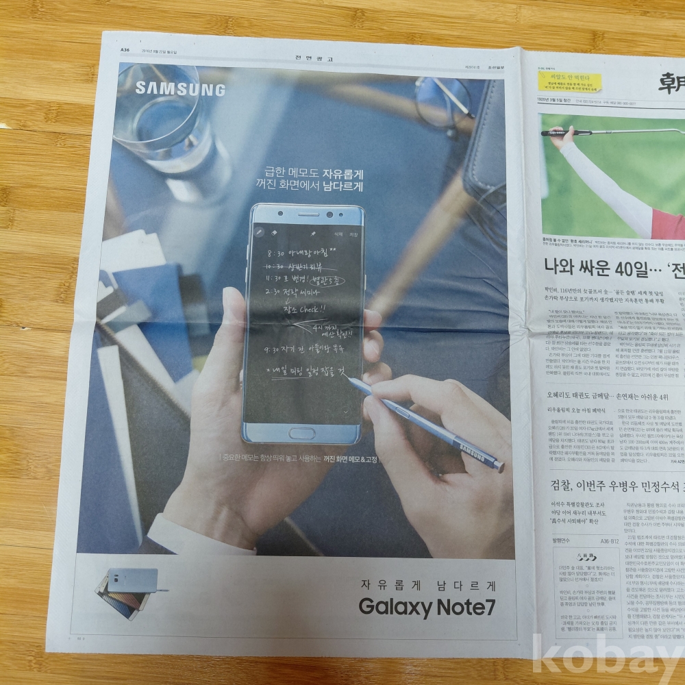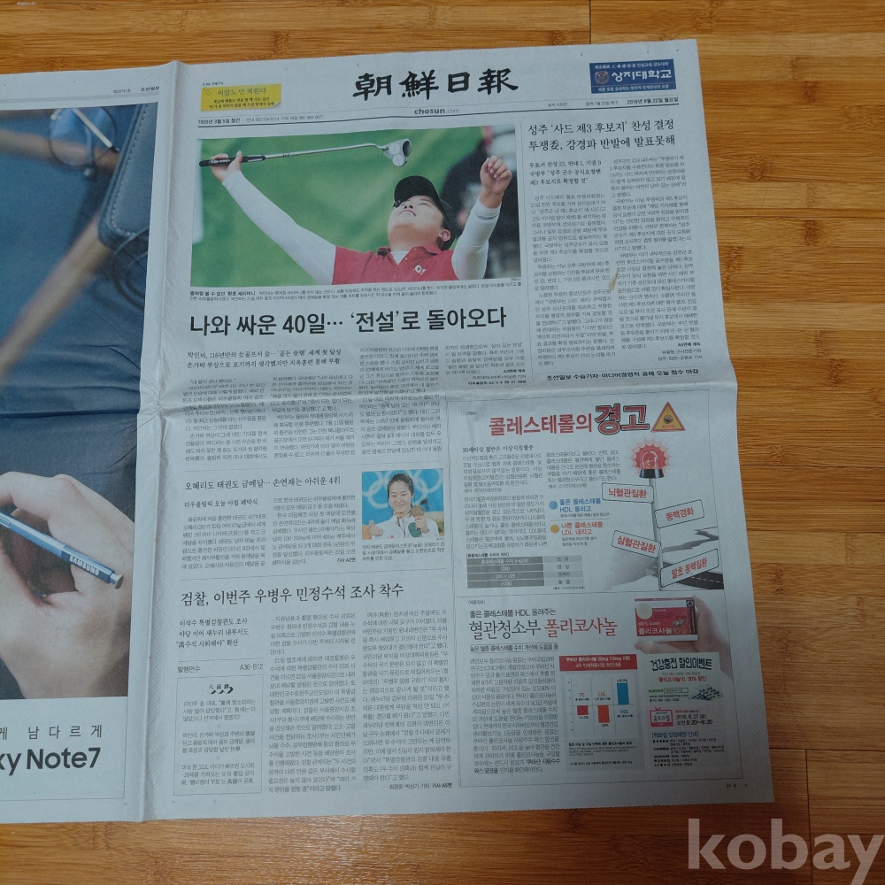삼성전자 휴대폰 ㆍ박세리 올림픽 금메달 메인기사 조선 16년8월22일 올려드립니다