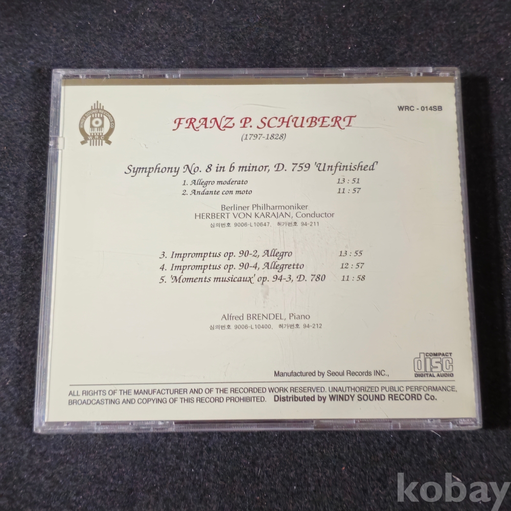 (천원경매)(((국내가요/POP/영화음악/CD) Franz Peter Schubert  (프란츠 페터 슈베르트) CD (1994)