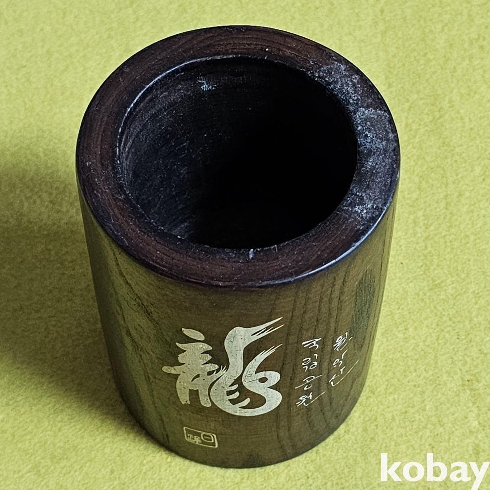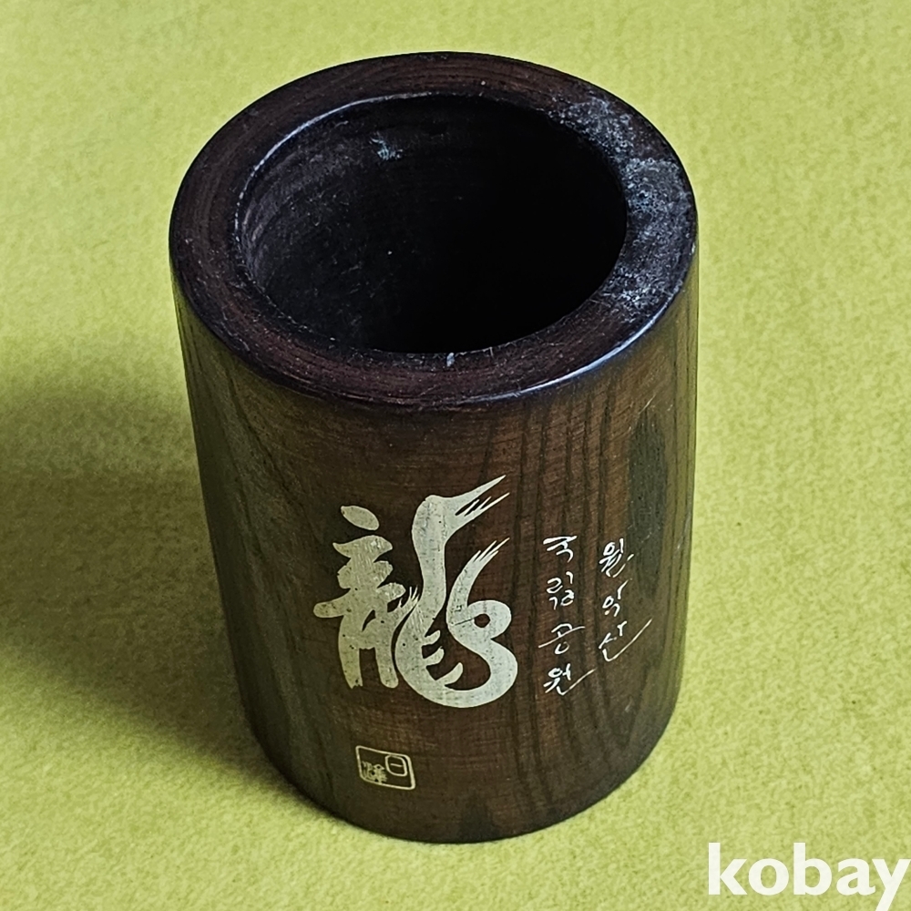 (((근현대사자료))) 오래전 龍그림 월악산 국립공원 기념 나무 붓통
