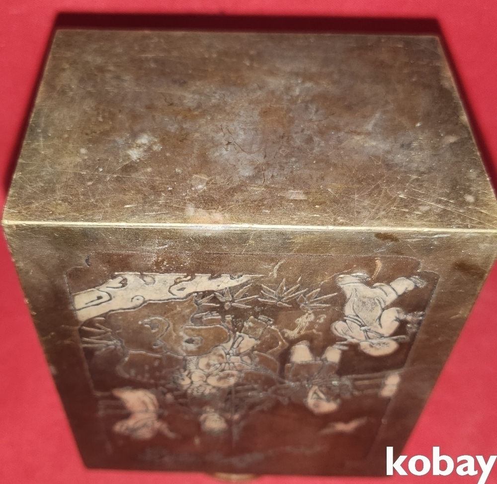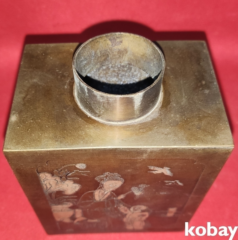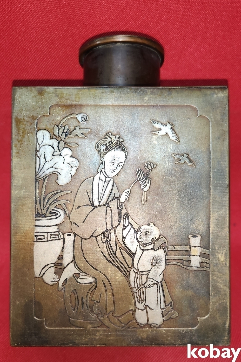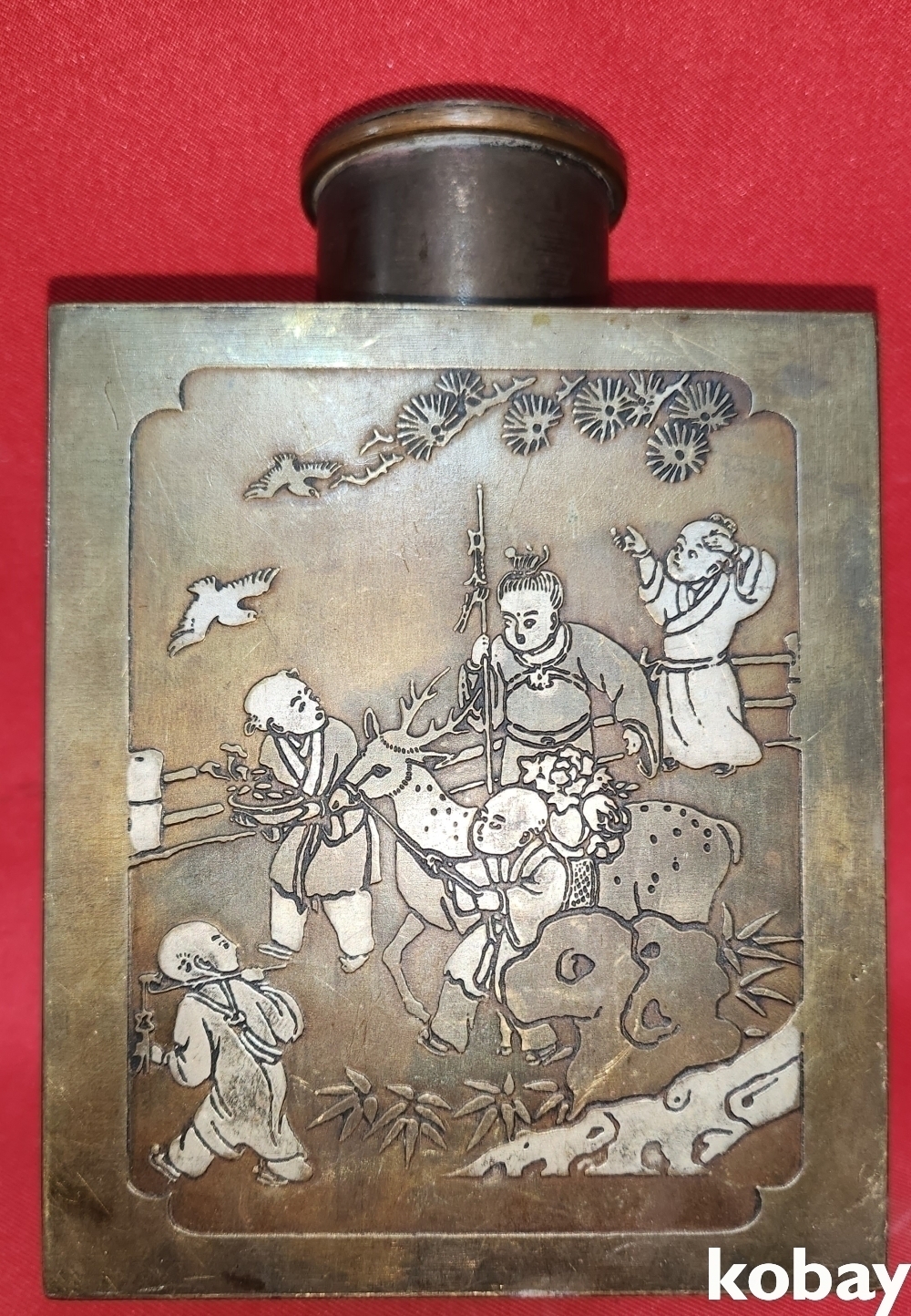 황동(黃銅) 동자 인물문 사각 병입니다,