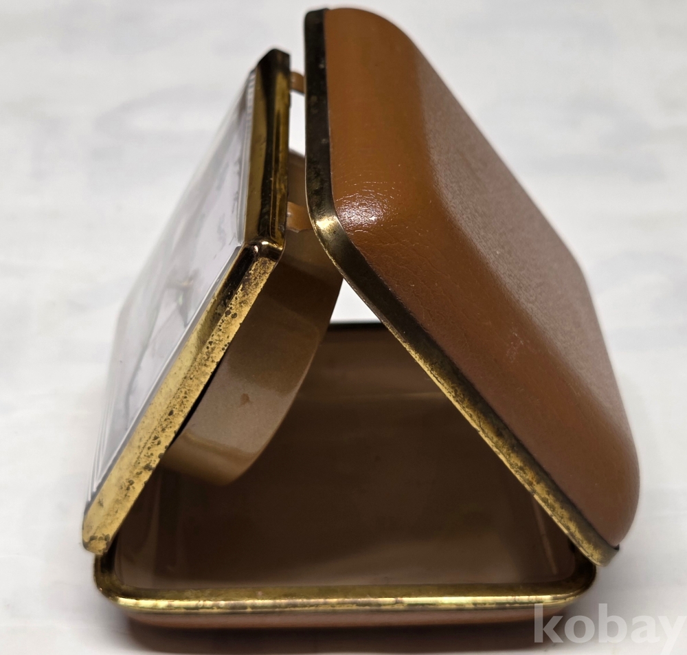 제 품 설 명 | ▣. 여행 시계의 유명 메이커인 일본 Telock 휴대용 여행 시계입니다. ▣. 시계는 동작하며 태엽과 알람기능 정상적으로 동작하나 시간은 어느 정도 맞으며 태엽을 감아 놓으면 하루 24시간 정도 사용이 가능합니다. ▣. 아날로그의 감성을 느낄 수 있으며 수동으로 시간을 설정하면 “따르릉”하는 클래식 벨 소리가 울립니다. ▣. 야간에도 볼 수 있도록 시침과 분침 표시는 야광으로 되어 있습니다. ▣. 세월의 흔적들이 있으나 세월 대비 양호하게 잘 관리된 시계이며 기타는 올려놓은 사진을 참고하길 바랍니다. ▣ 기타 부분은 오래된 시계이므로 사진을 충분히 검토하시길 바라오며 미입금 사례가 없으시길 정중히 부탁드립니다. |