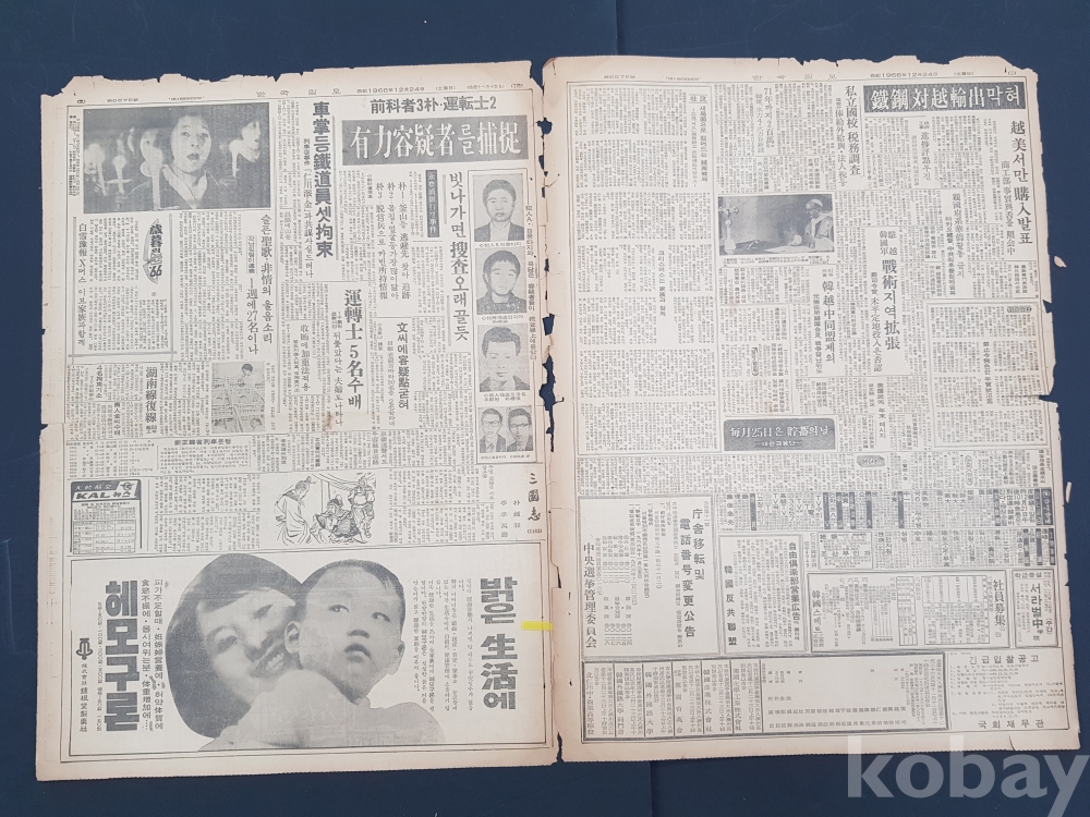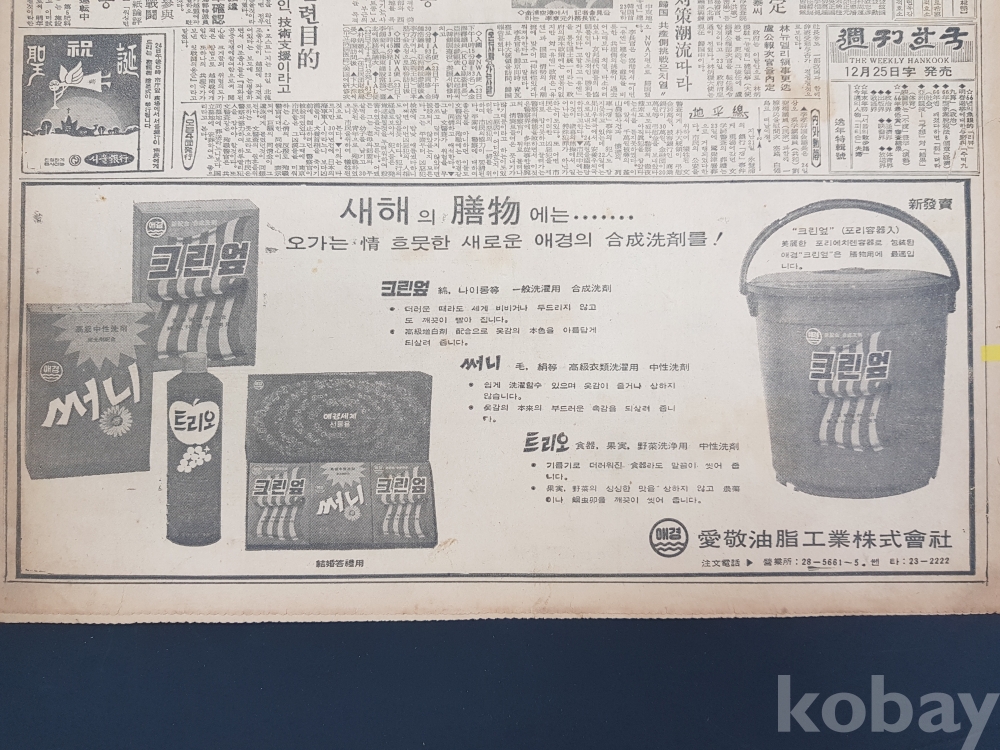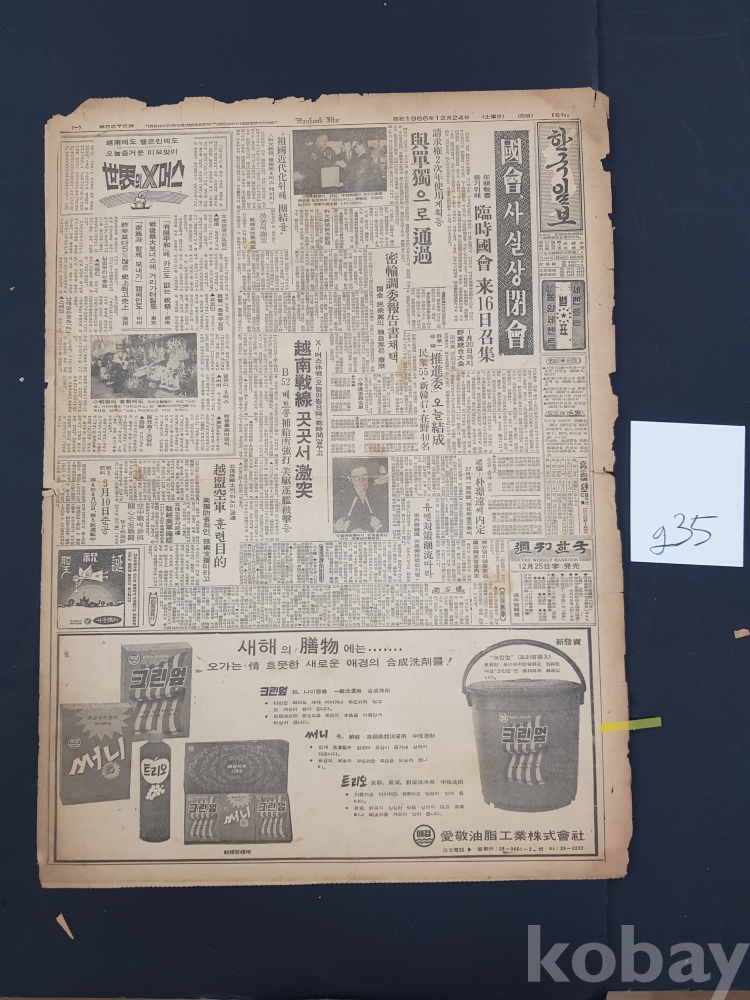 **** 1966.12.24(한국일보)/애경유지공업주식회사 크린잎,써니 등 광고포함/약 4면