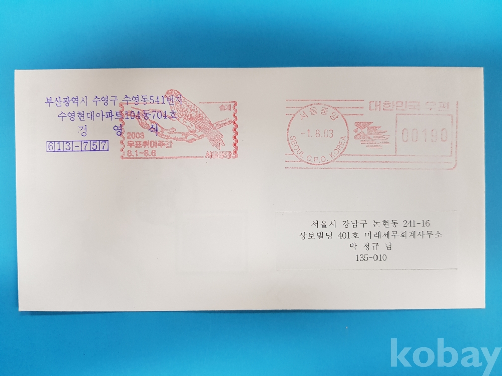 **** 우표,엽서,실체봉피류는 배송비를 선결제 하시면 등기우편으로 보내 드립니다