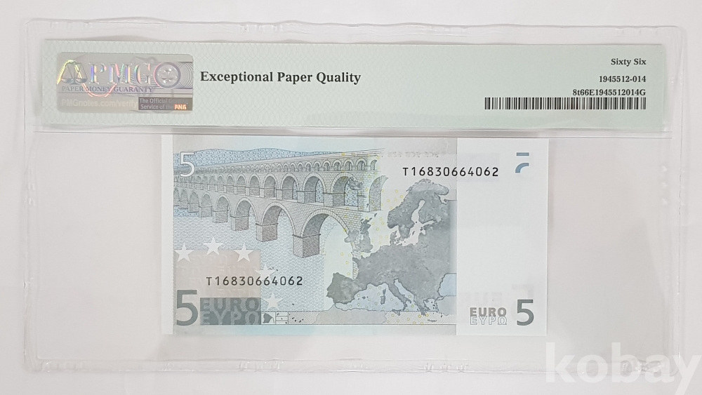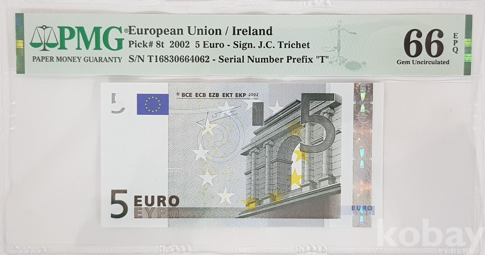 - 유럽연합 아일랜드 2002년 5유로 PMG 66 EPQ 인증 지폐
