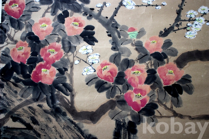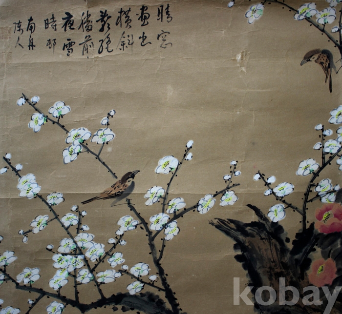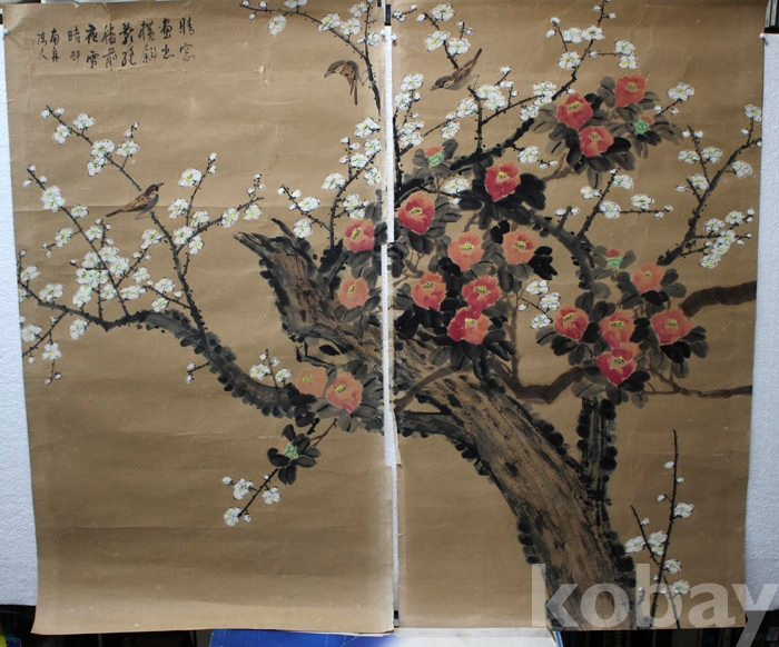 미술대전 심사위원을 지낸 南舟(남주) 홍신표의 화조도 2폭 대련작품 - 참새와 동백과 매화