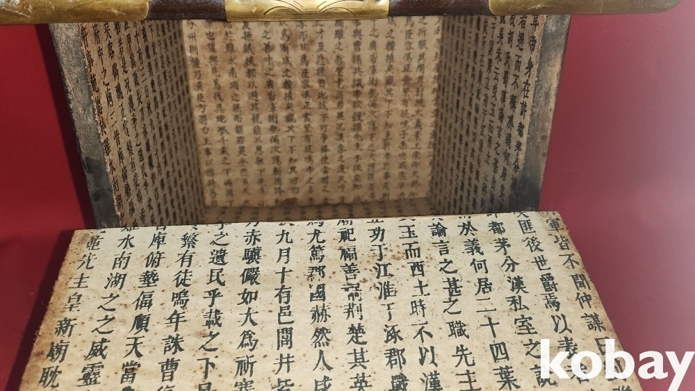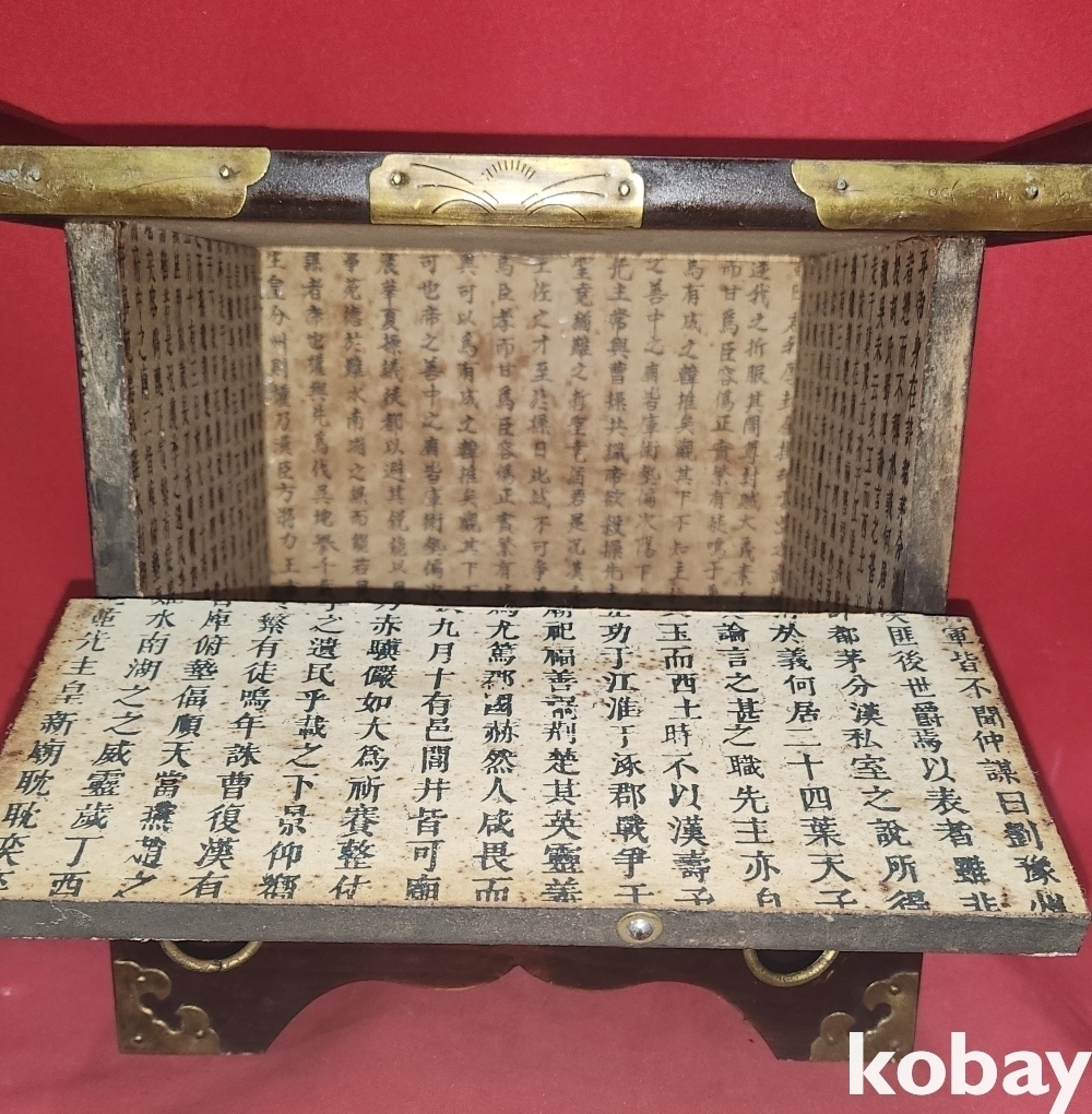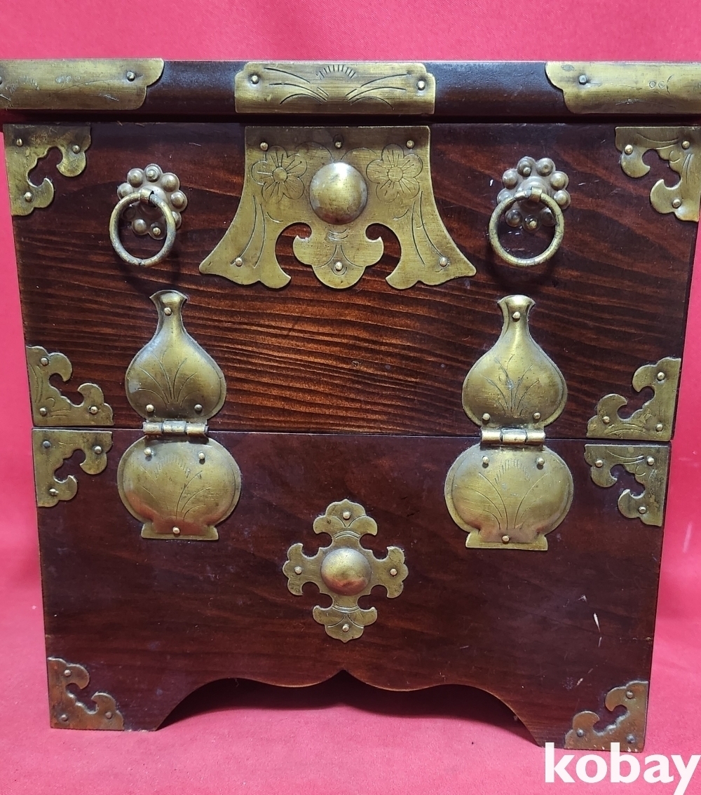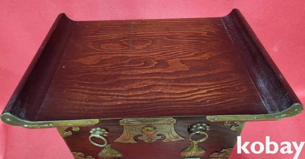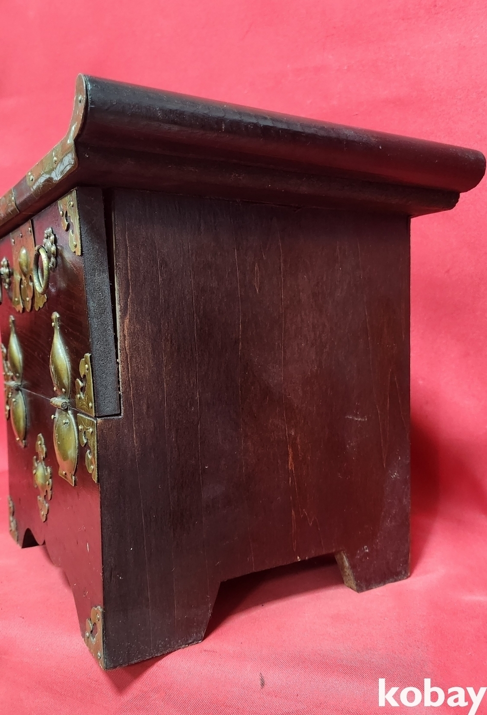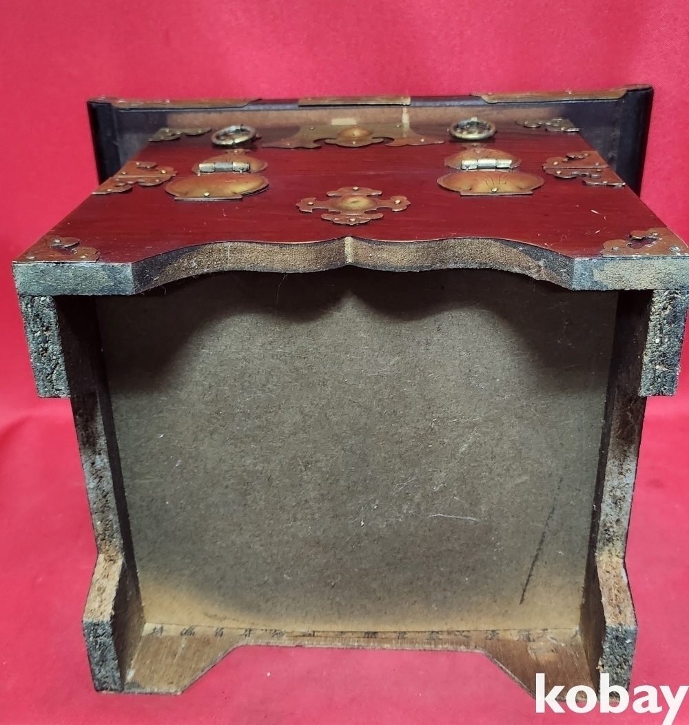 경첩이 청동으로 장식된 작은 장식용 반닫이입니다,