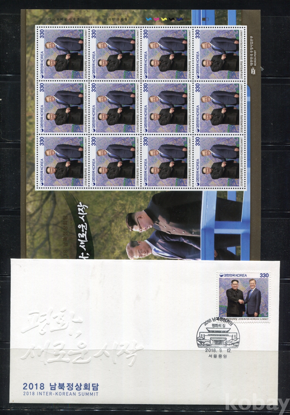 - [전지/FDC] 2018년 남북정상회담 전지 및 초일봉투 (All MNH : Mint Not Hinged) : 이미지 참조하세요