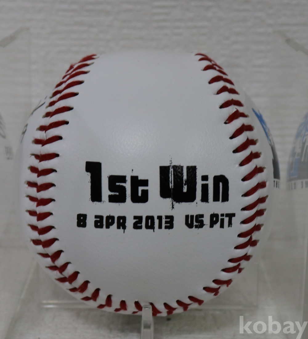 [no.9] 2013 LA몬스터 류현진 1ST WIN 인쇄 싸인 기념 야구공 / 미사용 / 아크릴케이스 포함