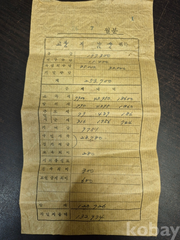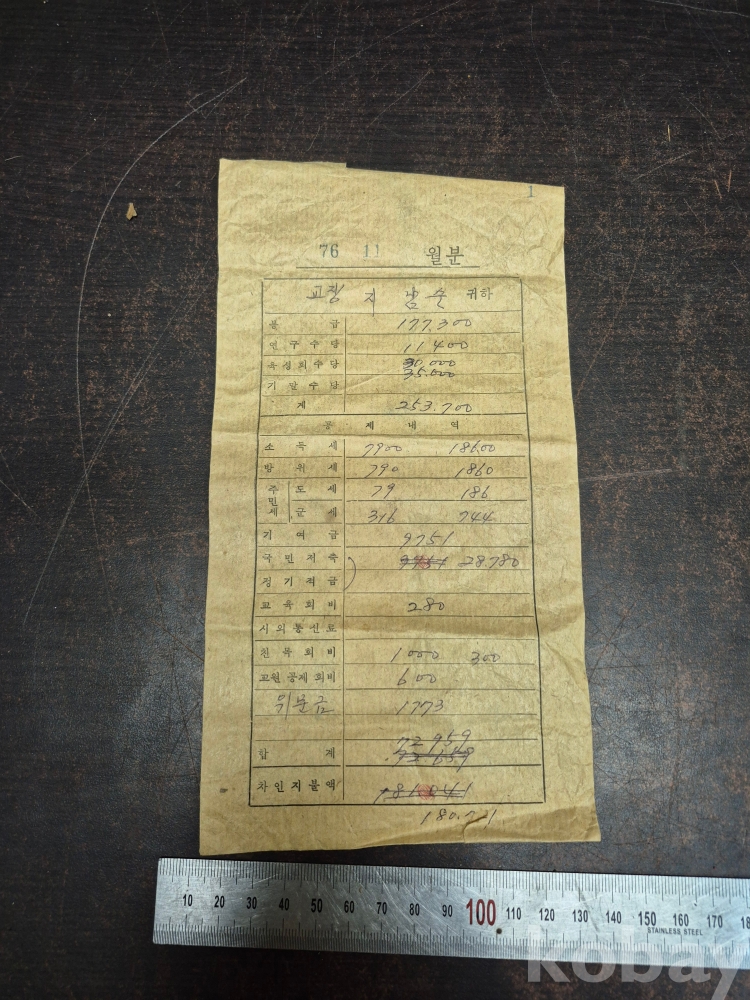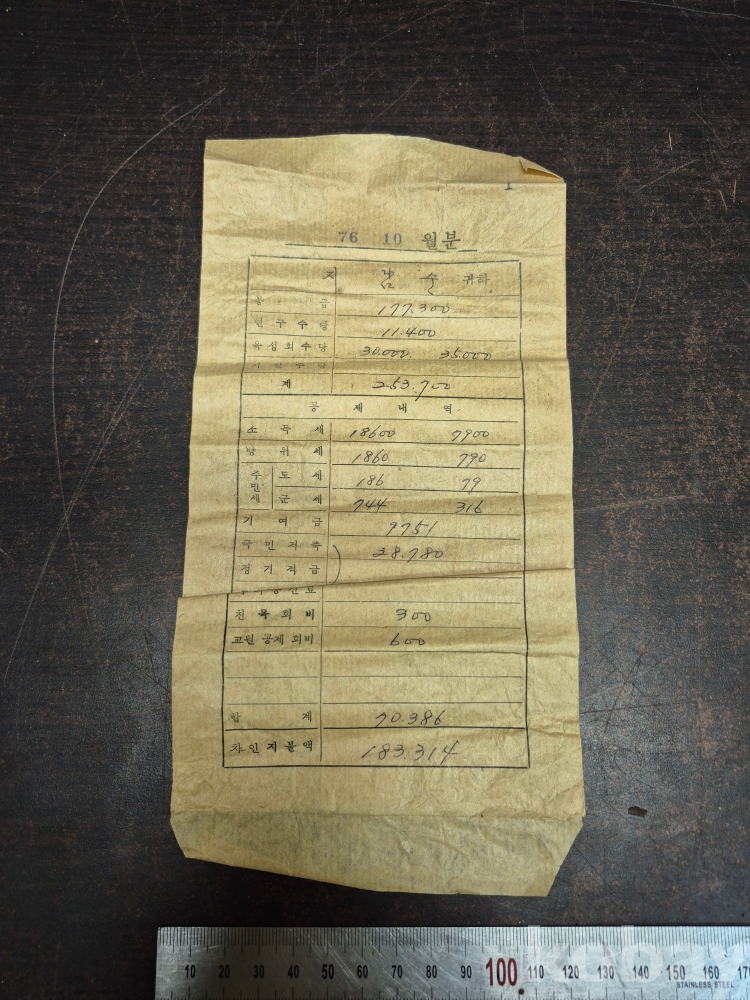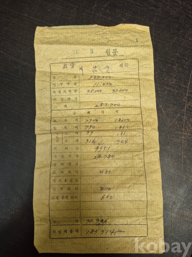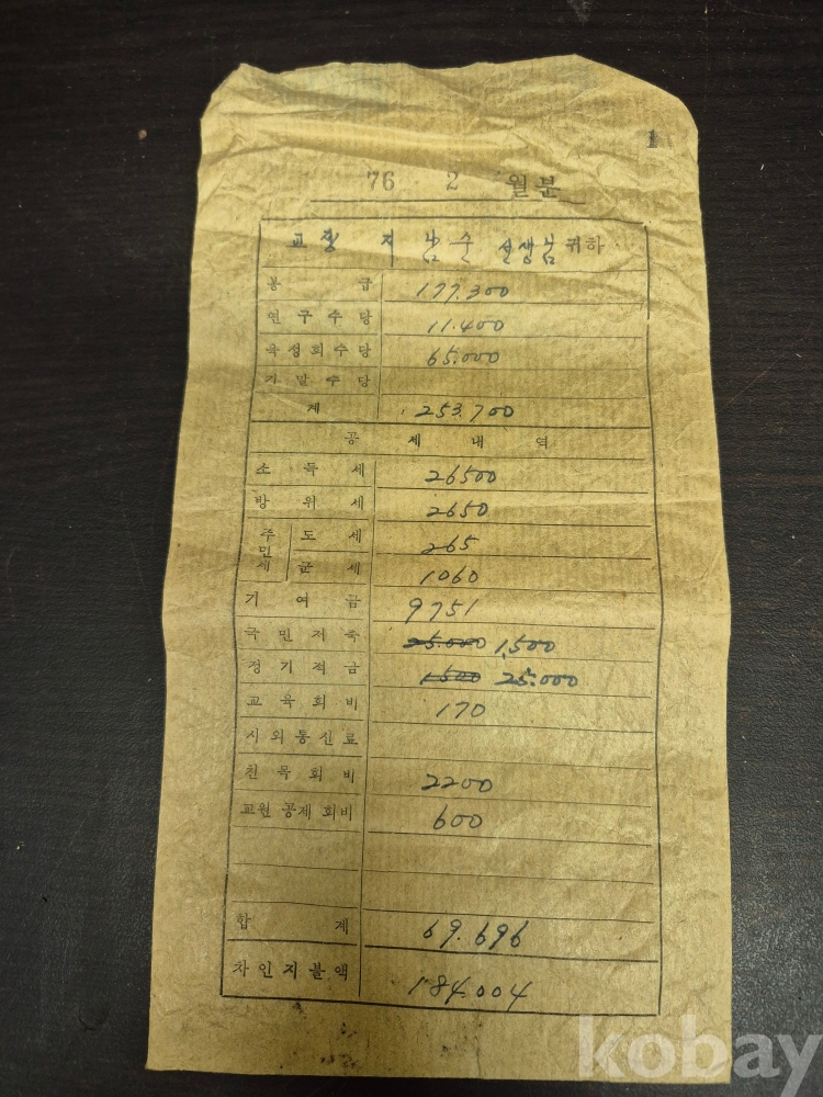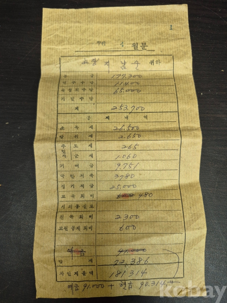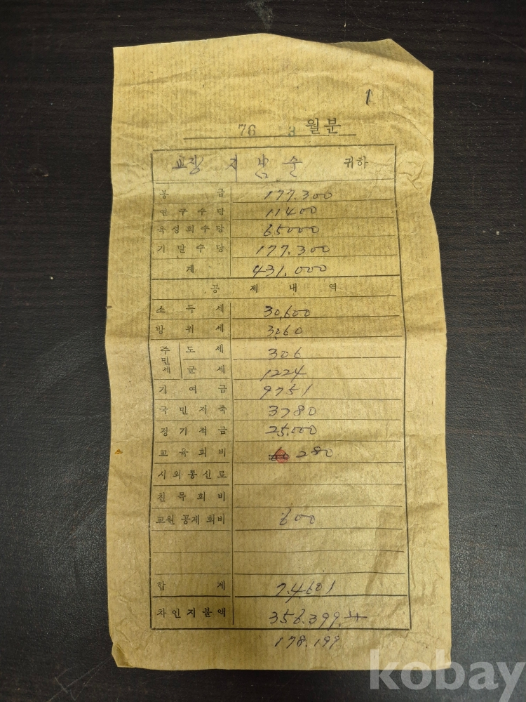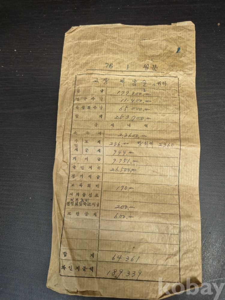 1976년 국민학교 교장선생님 급여봉투 와 상여금 봉투 11점 일괄 13*24*