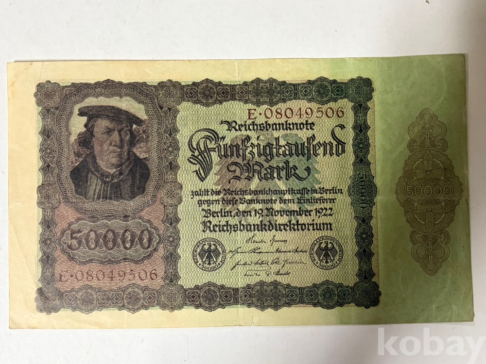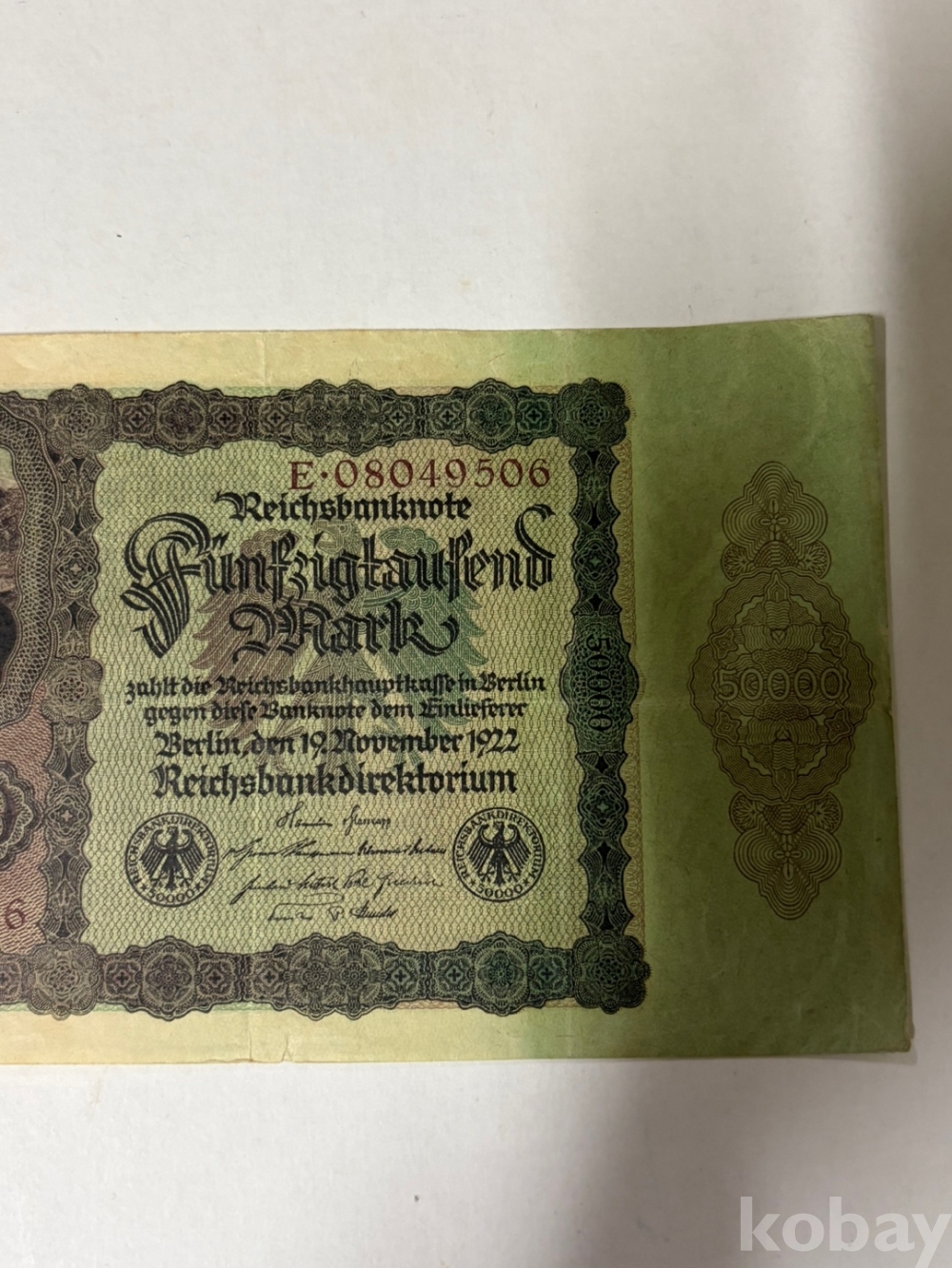 독일 1922년 발행 50,000 마르크 화폐입니다.