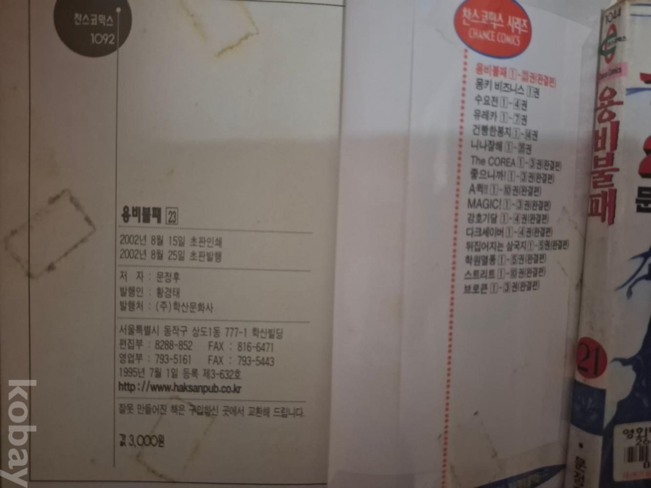 무협만화는 여러 작가가 있지만 요즘은 문정훈 작가가 웹툰에서 뜨고 있는 것 같습니다 그의 불후의 명작 용비불패 전23권을 드립니다