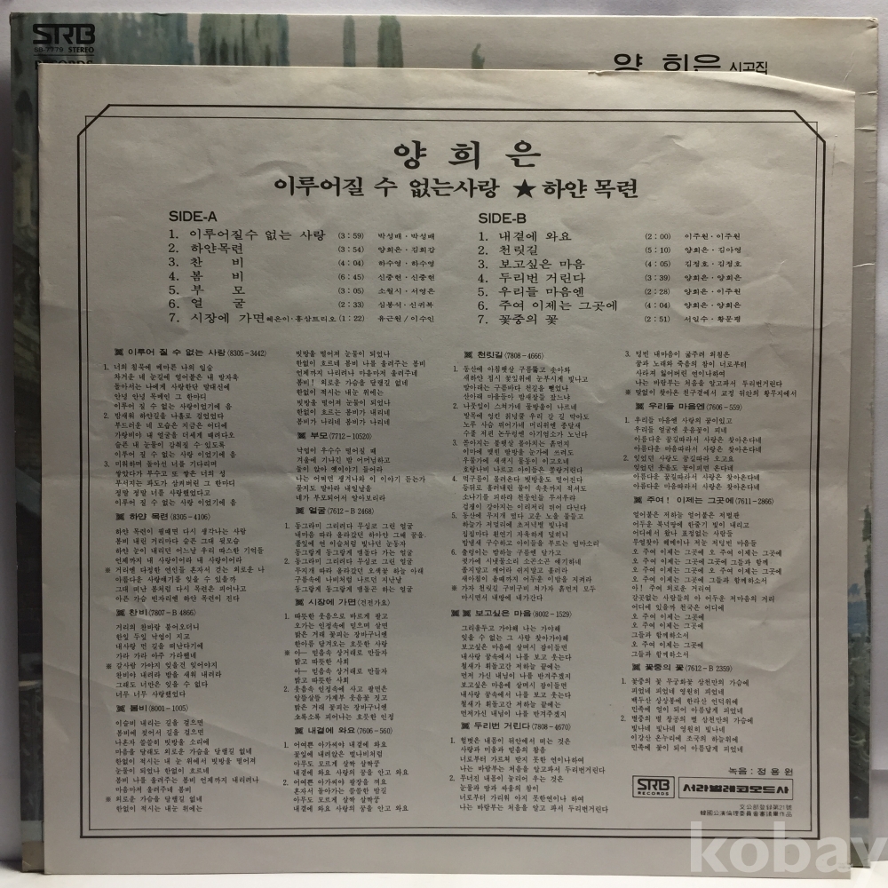 LP 250-262 양희은 이루어질수없는사랑/ 하얀목련 83 서라벌 자켓 EX+ 알판 EX+