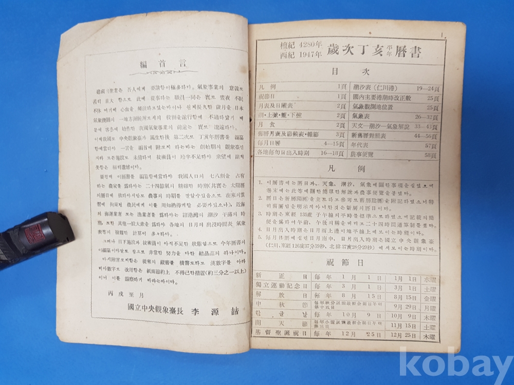 **** 歲次丁亥曆書/국립중앙관상대/1948.12.10발행