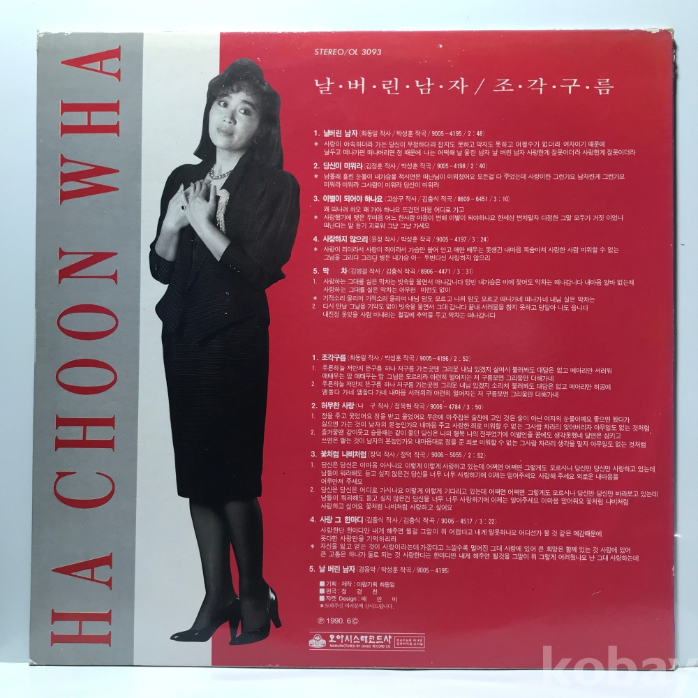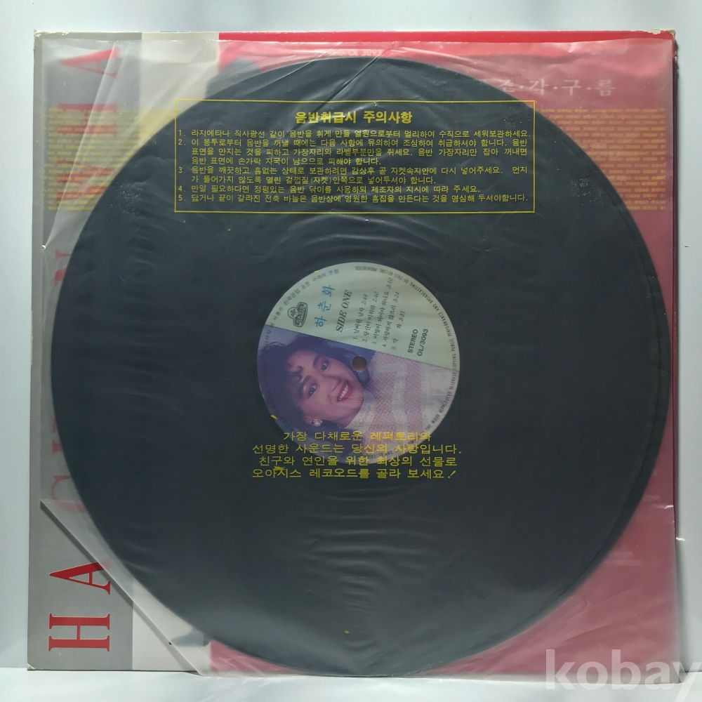 LP 29,300-214 하춘화 - 날버린 남자/ 조각구름 . 90 오아시스 자켓 EX+ 알판 EX+