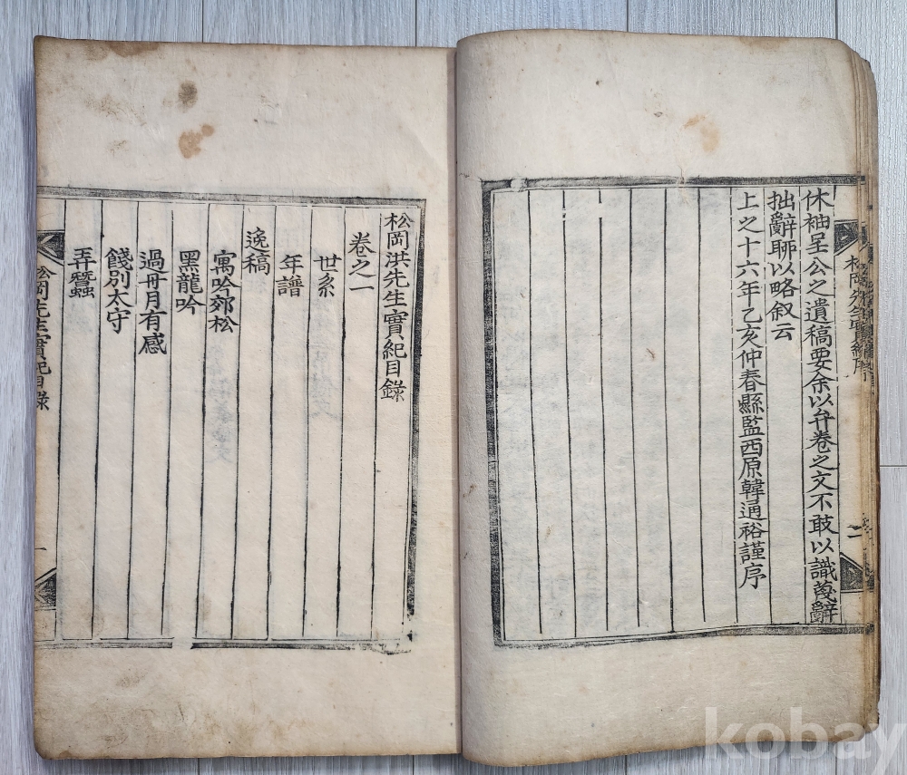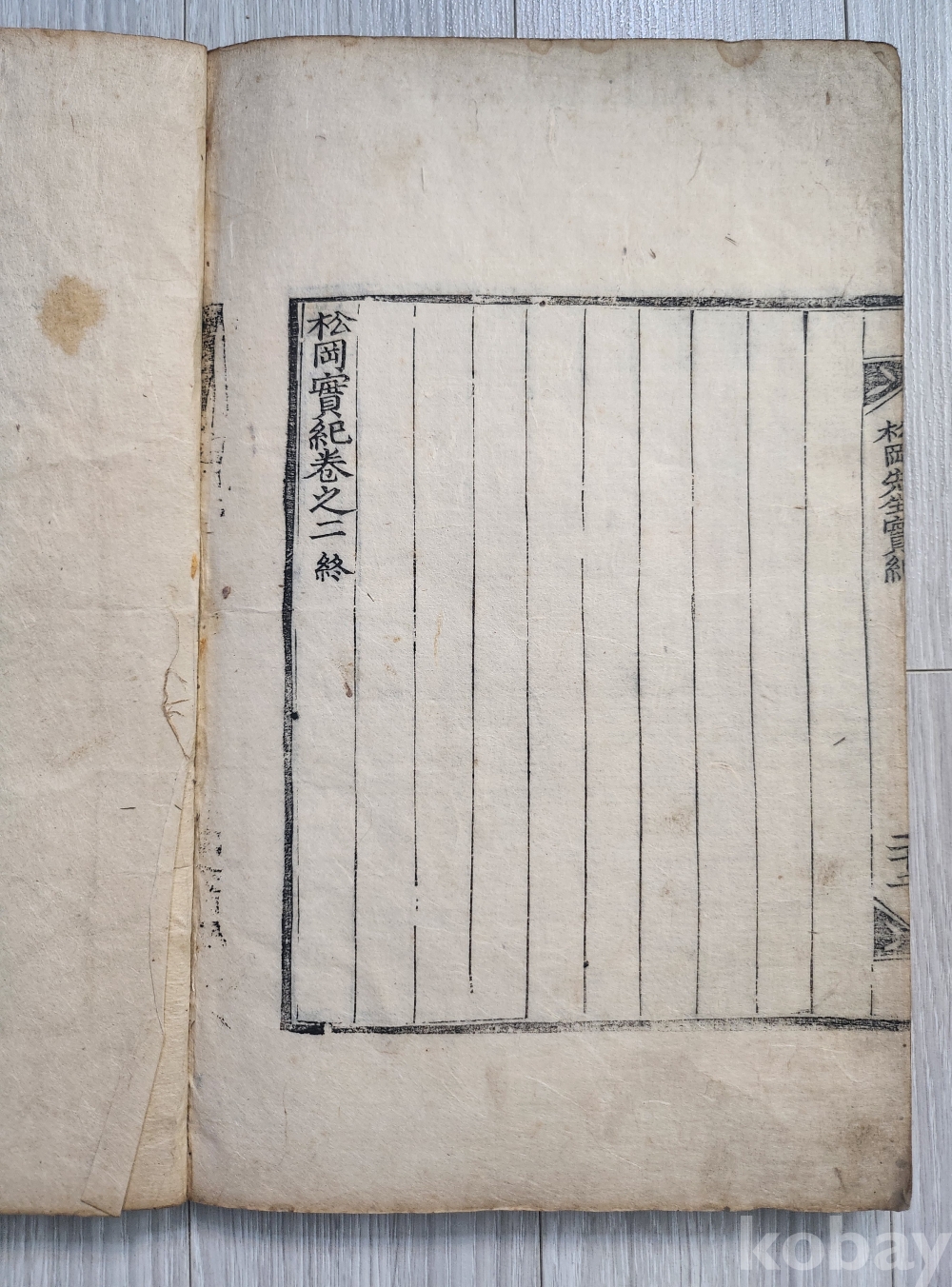 조선시대 1865년간행 송강선생실기(목판본) 2권1책 단권 입니다 발문-단양상한방예(홍) 벽수근발 세을축(1865년) 낙질 파본 없습니다