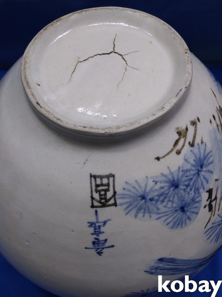 소나무와 새 두마리가 도안된 도자기 입니다.