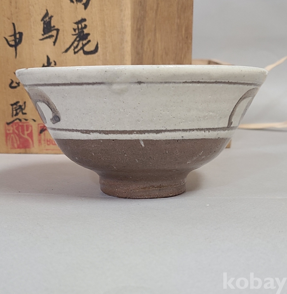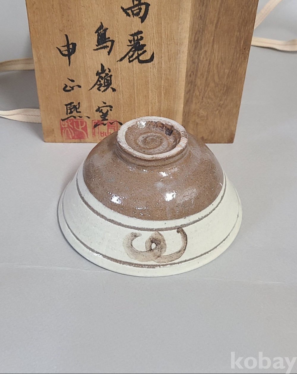 신정희 선생님의 작품성이 좋은 분청다완으로 옛멋을 느끼게 하는 형태와 미색의 분청에 색감도 고태미가 느껴지는 작품으로 수결상자와 함께 작품내 수결은 굽의 바닥 안쪽면에 귀한 세글자 수결인 "申正熙 " 수결이 새겨져 있으며 작품의 크기는 입지름이 14.3 높이가 6.8 cm 입니다.