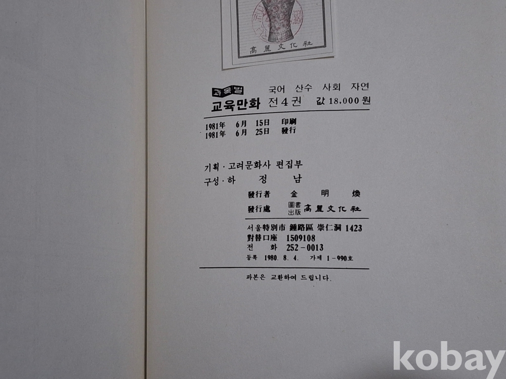 81년 초판 과목별 교육만화로