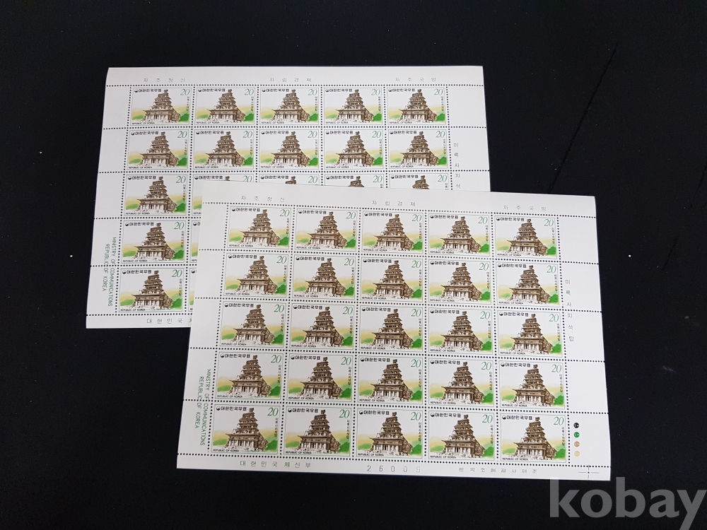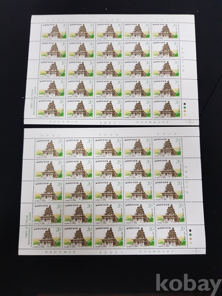 - 미사용 1978년 석탑 시리즈 제 2집 미륵사지 석탑 전지 2매 일괄