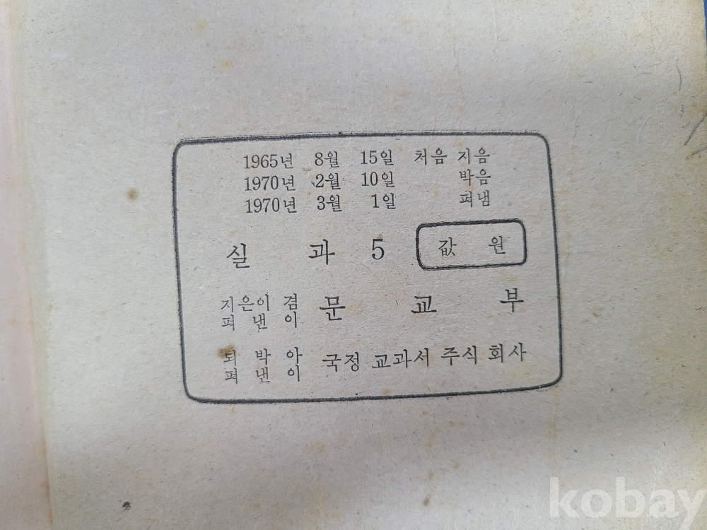 [교과서] 실과5*1970년/문교부 발행,낙서, 물먹음,찢어진부분 있음