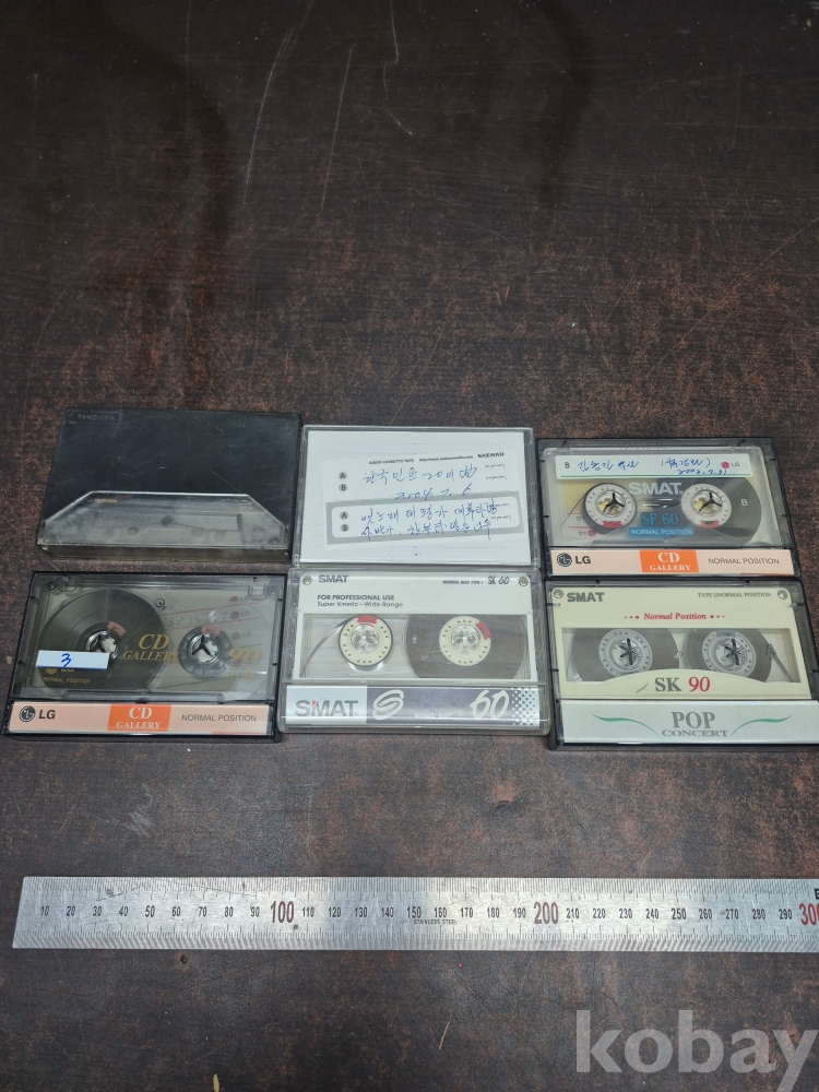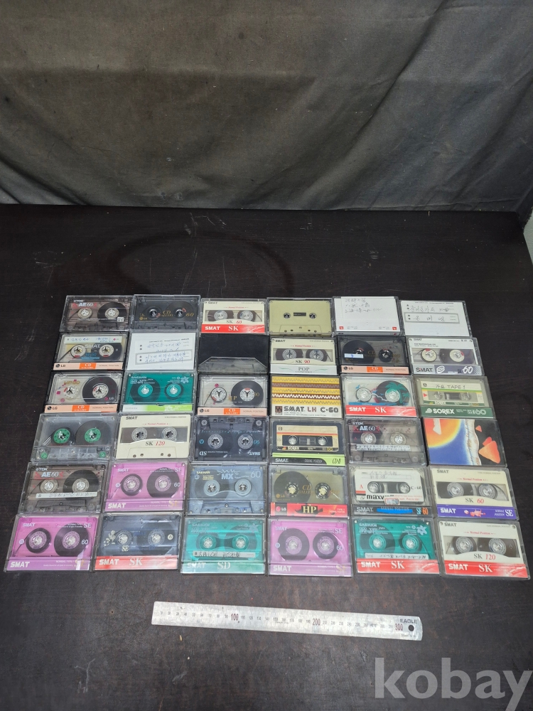 1980-90년대 공테이프에 녹음된 카세트 테이프 36점 일괄 11*7*1.5