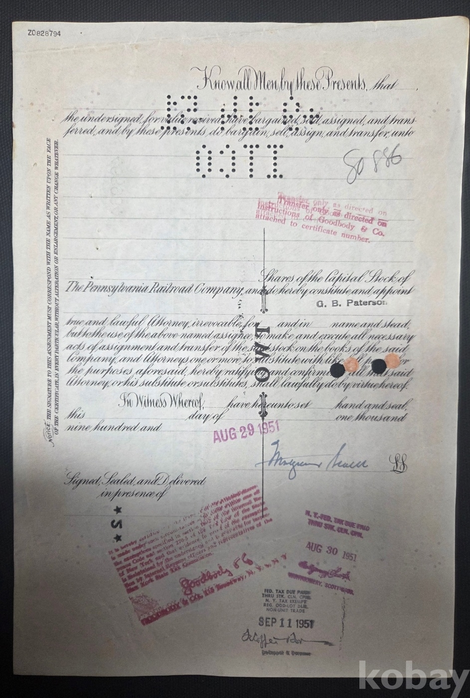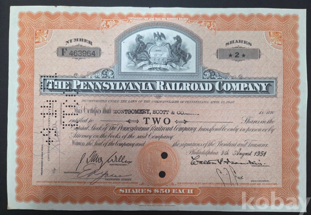 - 1951년 2주권 / THE PENNSYLVANIA RAILROAD COMPANY