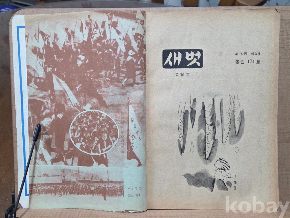 책등 일부가 해졌고, 앞표지 상단 왼쪽에 볼펜으로 V자로 체크한 낙서가 있습니다.