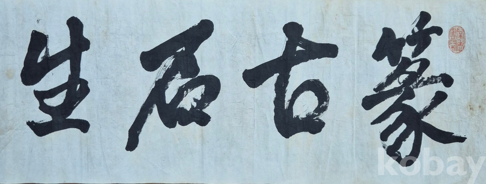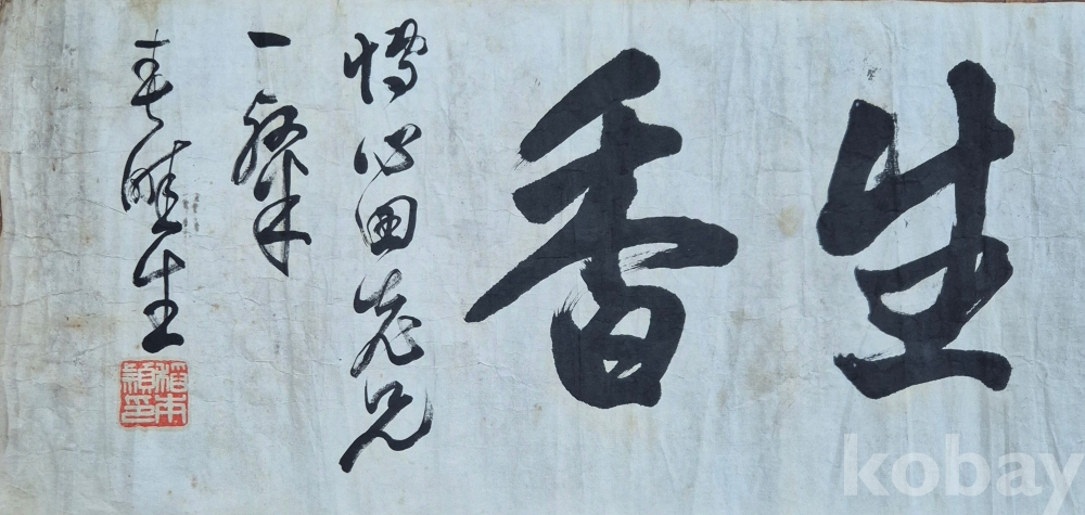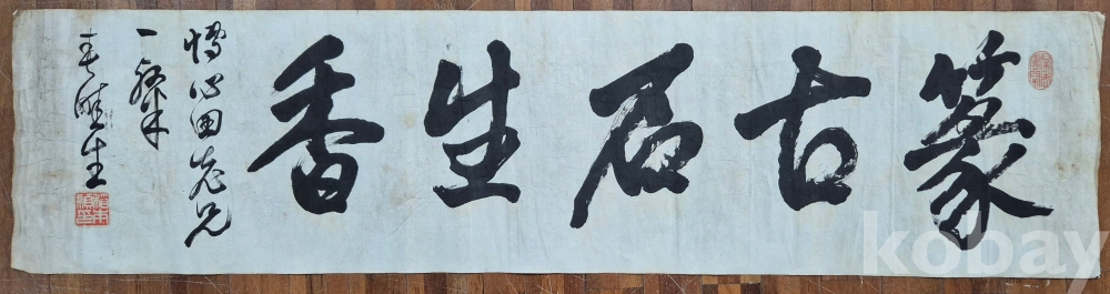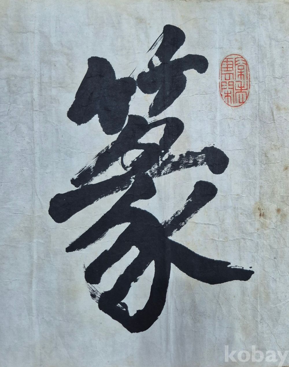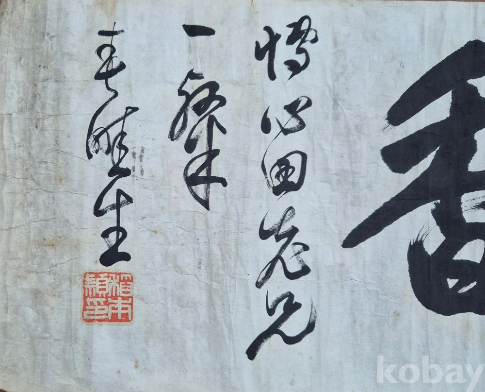 오래된 고급 두꺼운 한지 계통 재질에 쓰여진 대가 작품 추정되는 명품 서예 작품'입니다