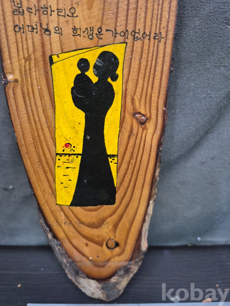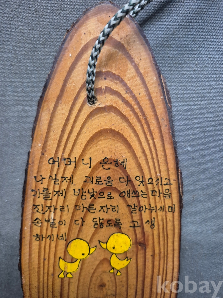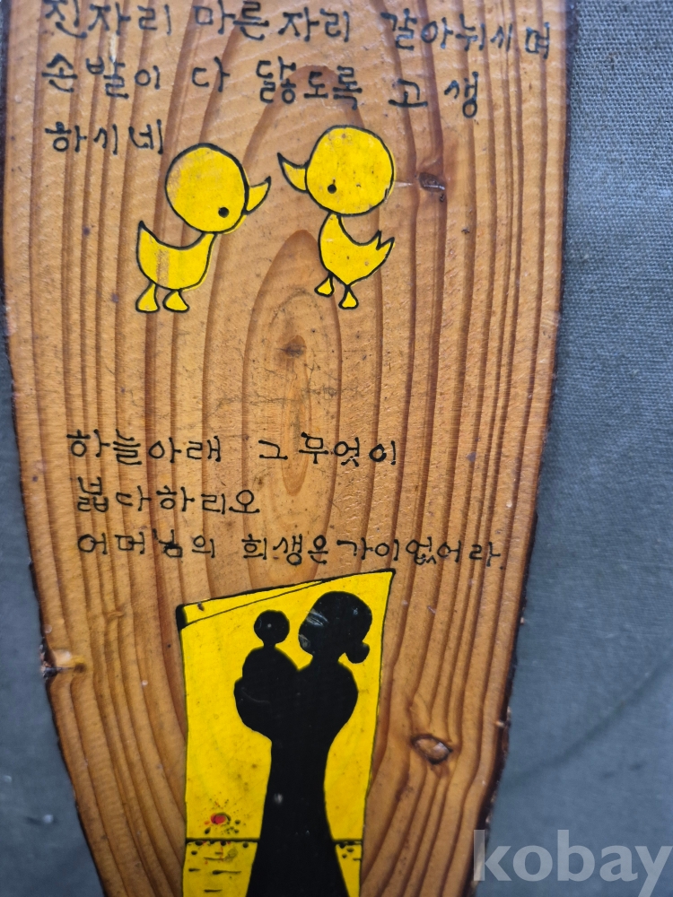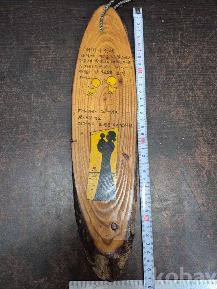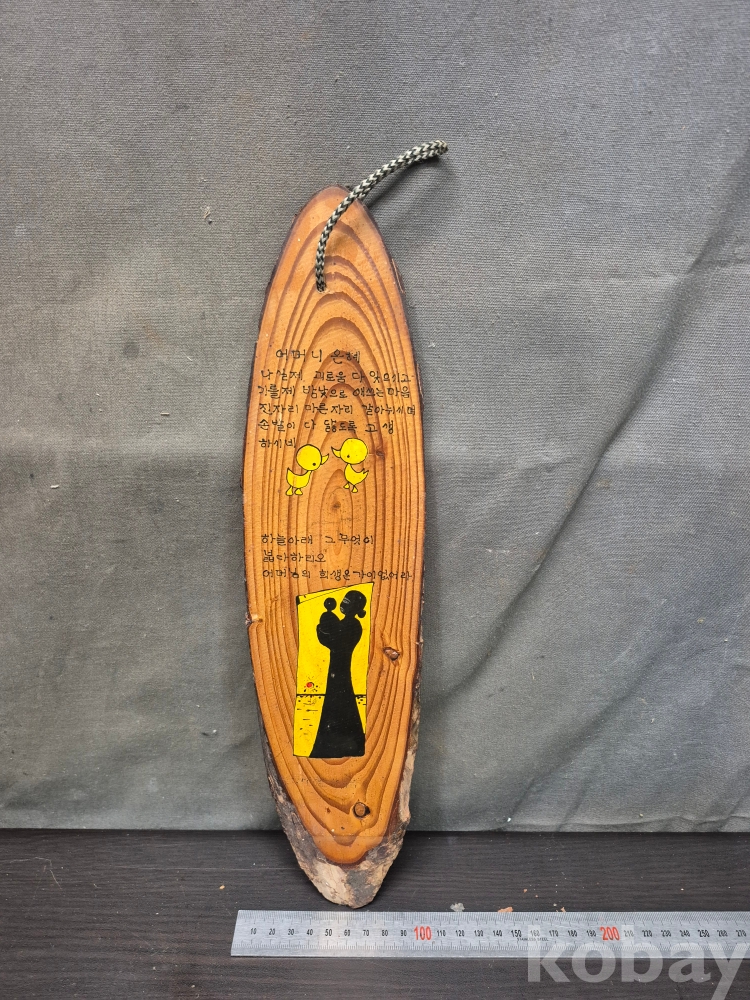 1970-80년대 원목에 어머니 은혜를 글로 쓰고 그림을 그려넣은 벽걸이형 소품 1점 37*9*2
