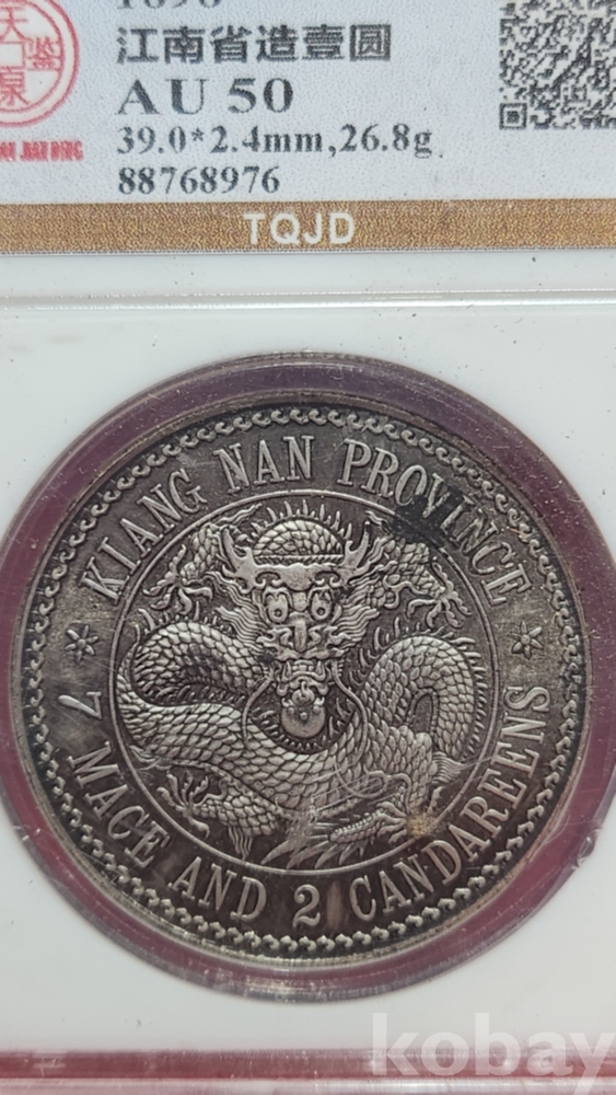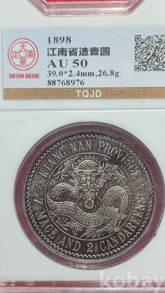 1898년 큐알코드(QR CODE)가 함께하는 은색  광서원보 (光緖元寶)   화패로 밀봉된 상태입니다,