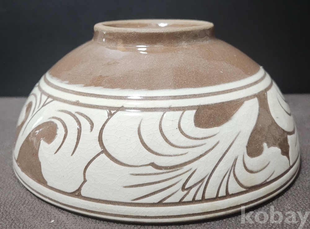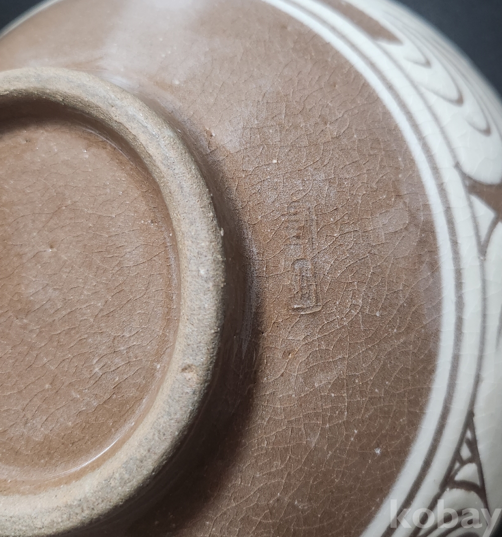 분청박지음각모란다완 粉靑剝地陰刻牡丹紋茶碗 < 도예가 음각 수결 作 >