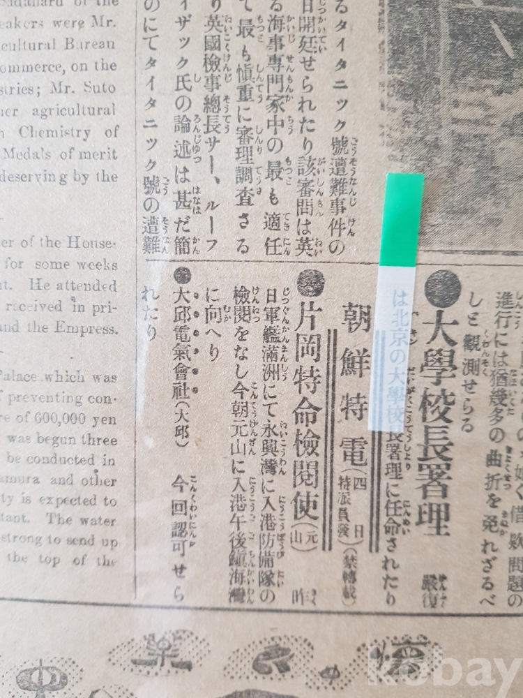 [EE76]*東京日日新聞/1912.5.5./朝鮮特電.일본군함 영흥만 입항(원산),대구전기회사(대구)