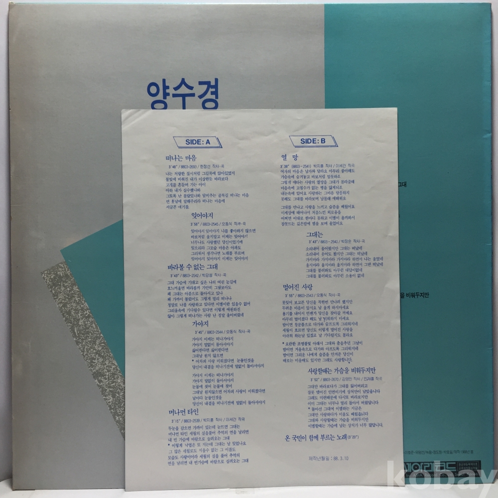LP 81,800-43 양수경 1집 - 떠나는 마음/ 잊어야지 자켓 EX+ 알판 EX 88 년 국내반
