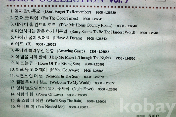 수록 곡 목은 사진을 참조하시기 바랍니다
