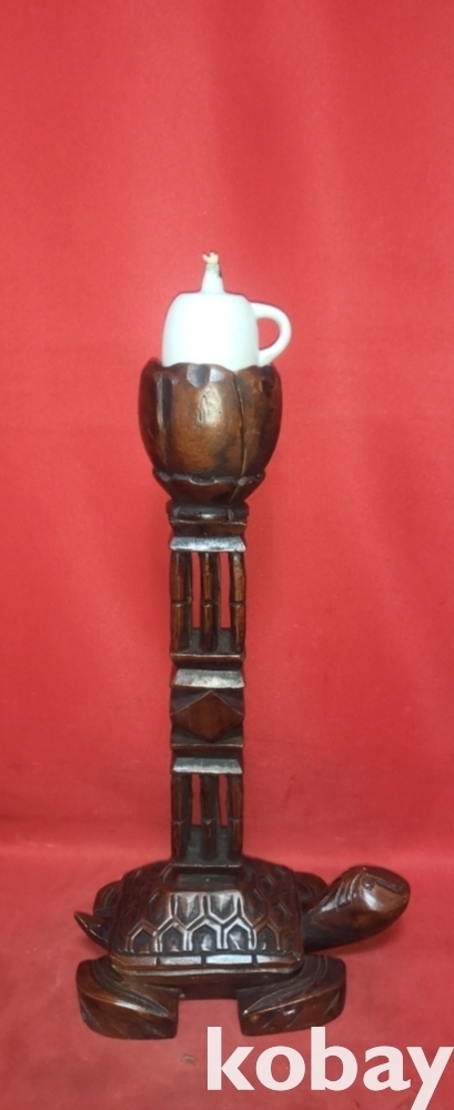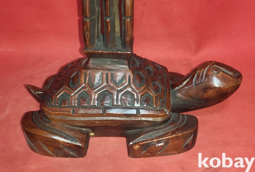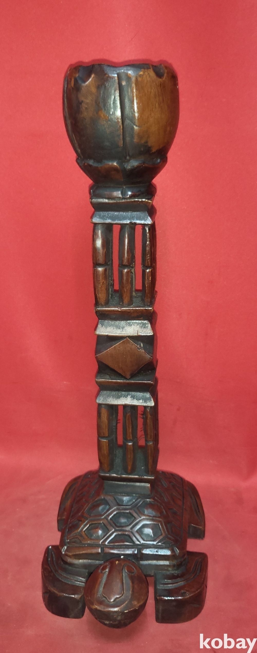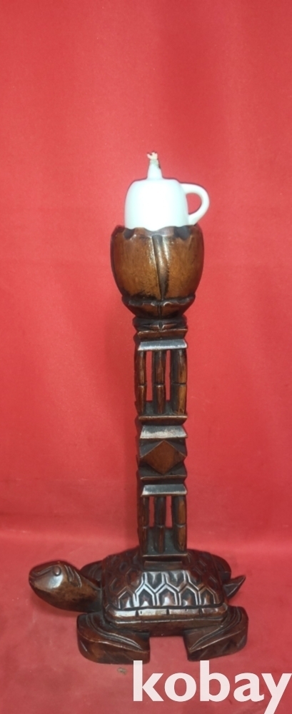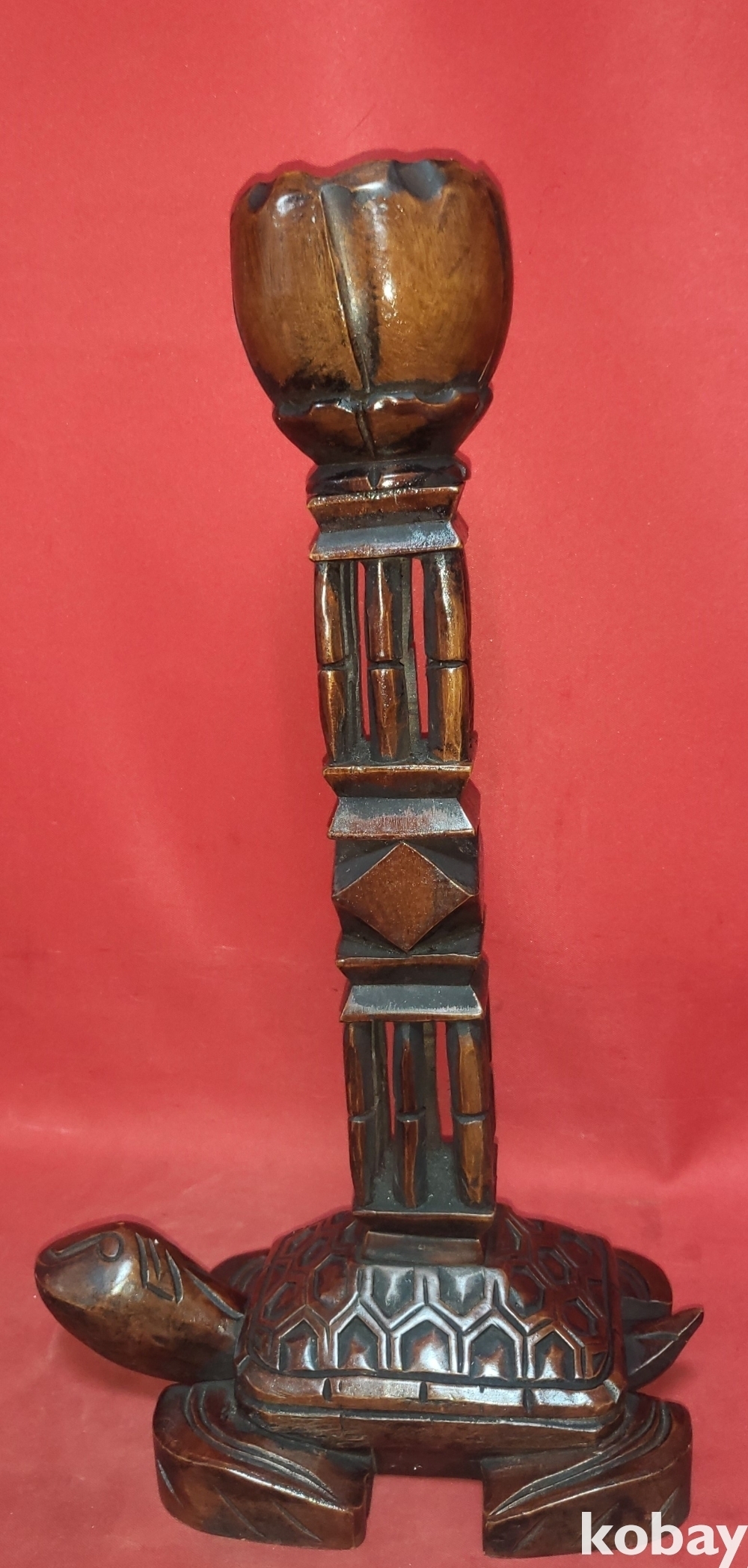 조선말 연대 갖춘 거북이 받침대에 꽃문양 상판으로 장식된 투각 등잔대입니다,