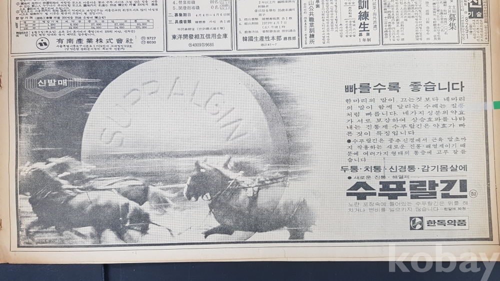**** 1973.04.03(중앙일보)/한독약품 수푸랄긴 광고포함/약 8면