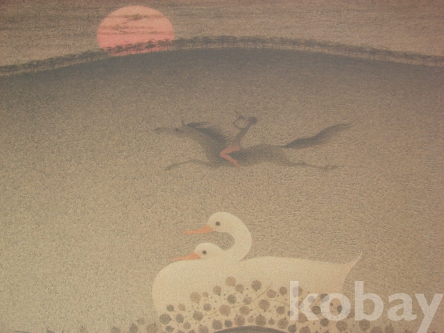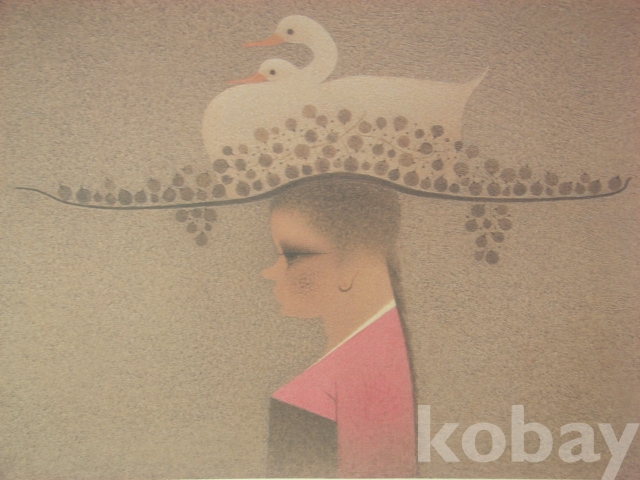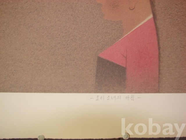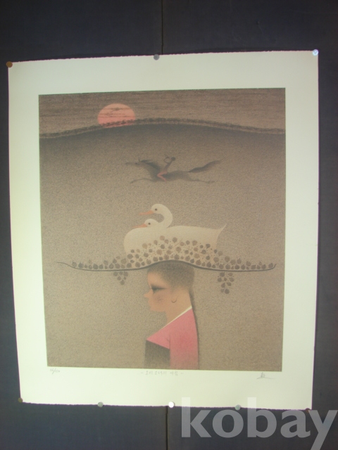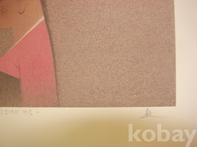 국전 심사한 박창돈(朴昌敦)의 석판화 "오리소녀의 아침"(55×46.5)입니다.